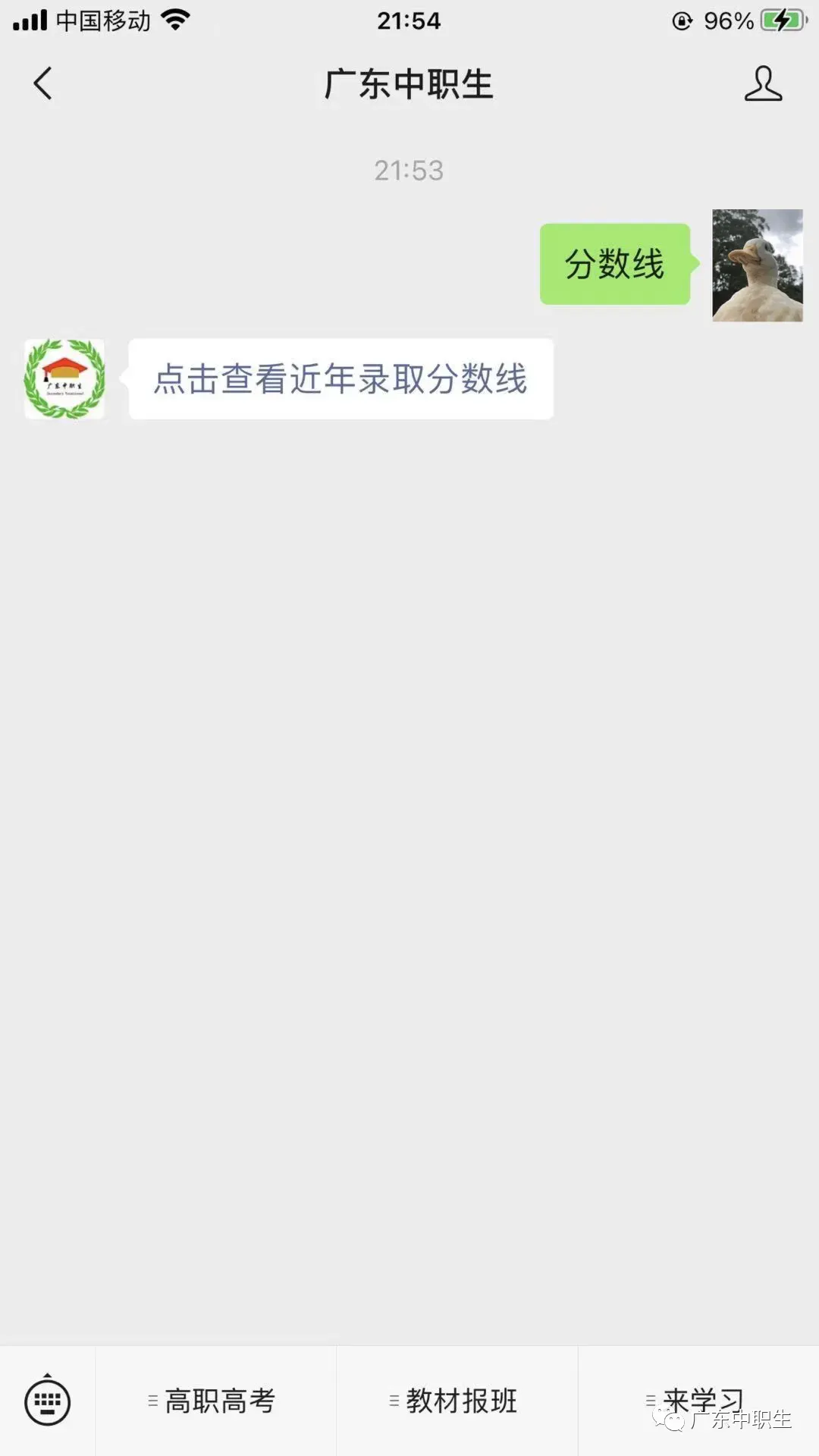 在对话框回复「分数线」