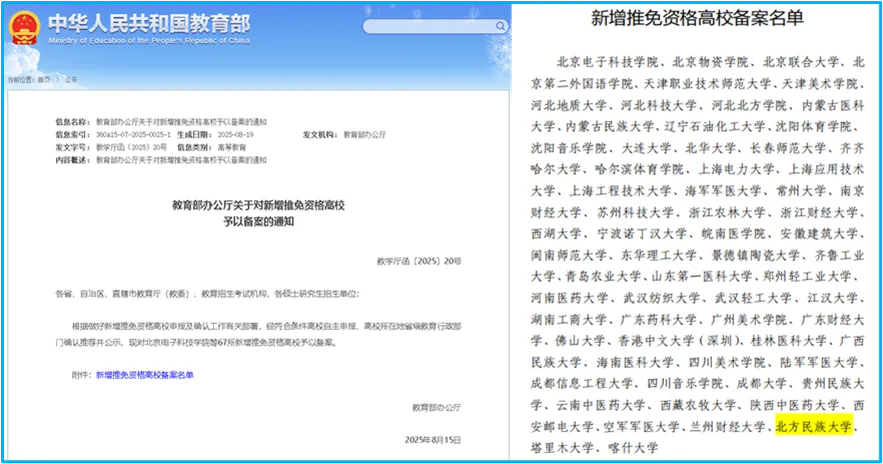 2025年8月,我校成功获批推免资格高校,标志着学校正式迈入具备完整本硕博一体化拔尖人才培养体系的高校行列,办学水平再上新台阶。根据学校推免管理办法,经学生自主申请、学院遴选推荐、教务处复核以及学校推免工作领导小组审议等程序,103名学生获得推免资格且全员顺利被录取,其中69人进入“双一流”高校就读,圆满实现推免工作“开门红”。
