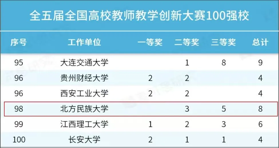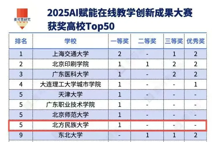 在各级各类教学竞赛中,学校教师捷报频传,全年斩获国家级奖项36项(特等奖2项、一等奖3项、二等奖9项、三等奖22项),33人次获省部级二等奖及以上荣誉,学校获评自治区教学竞赛优秀组织奖。此外,学校成功跻身全五届全国高校教师教学创新大赛100强(第98位)、2025AI赋能在线教学创新成果大赛获奖高校Top50(第5位),充分彰显了学校在教学创新领域的强劲实力与师资队伍建设的丰硕成效。