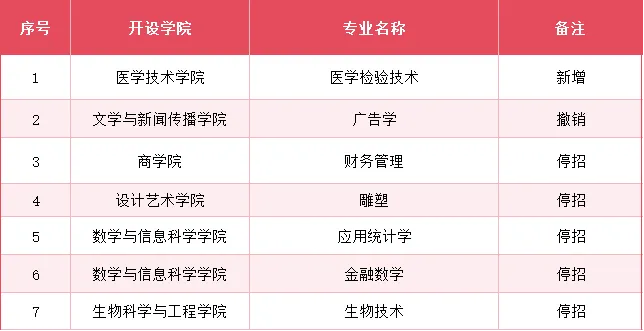 新增医学检验技术专业,停招财务管理、雕塑等5个专业,撤销广告学专业;预申报新增机器人工程、智慧水利等9个专业;预警测控技术与仪器、传播学等7个专业。不断提高理工教育类专业占比,较2024年提高1.84%,专业布局更趋合理,精准契合国家战略与区域产业发展需求。