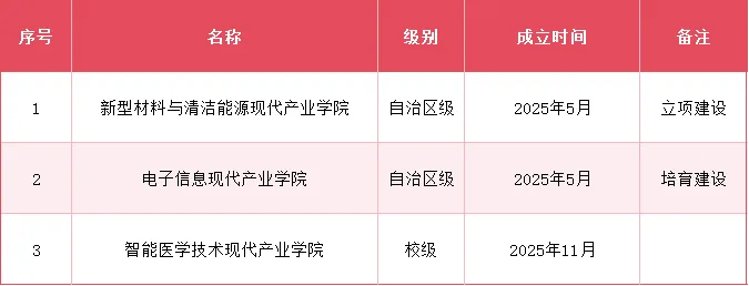 持续深化与地方政府、行业企业的协同合作,促进产学研用深度融合,新增校级智能医学技术现代产业学院,新型材料与清洁能源现代产业学院、电子信息现代产业学院(培育建设)成功获批自治区级现代产业学院。新增立项“中医理疗与智慧健康管理”等6个微专业,圆满完成8个微专业、4个辅修专业招生报名及录取,为学生个性化成长与多样化发展搭建了优质平台。