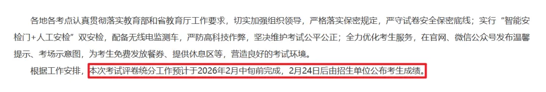 江西省教育厅明确:本次考研评卷统分预计于2026年2月中旬前完成,2月24日后由各招生单位会陆续公布成绩。