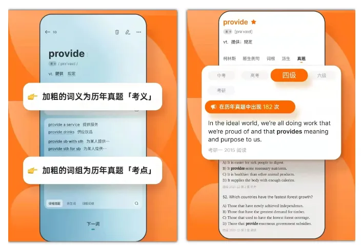 每日的单词学习量,以及记忆模式(看英文回忆中文or看中文回忆英文)都可以根据自己的需求自定义设计!学习进度看得明明白白,帮你轻松攒够词汇量,英语备考少走弯路。