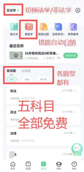尤其是对于现阶段考研初期,晓伙伴们就可以听完一章节的课程,就在觉晓法硕app刷对应章节的题目,检验自己的听课效果!
