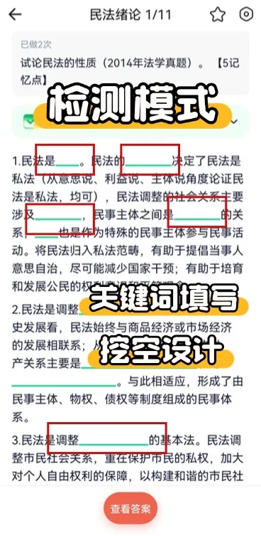 融合了【背诵+检测+复习】三种模式,有【anki背诵卡+思维导图+记忆口诀】等辅助的法硕专属背诵神器!