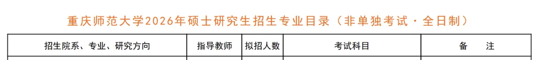 2.初试科目:详见《重庆师范大学2026年硕士研究生招生专业目录》。