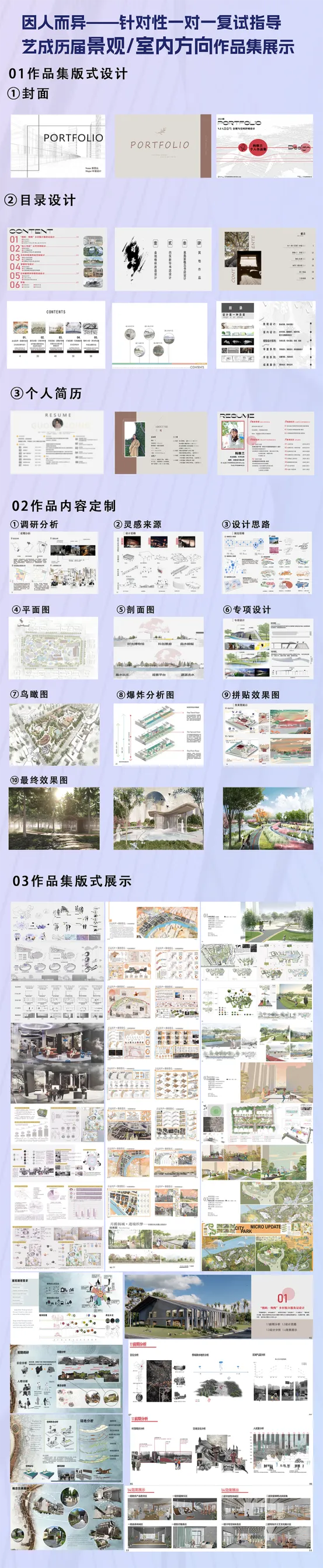 其次就像艺成说的,作品集里也并非都是作品!这也是艺成八届复试班实战积累的独家工程大上岸经验!(后面也有艺成往届上岸学员作品集展示哦~)