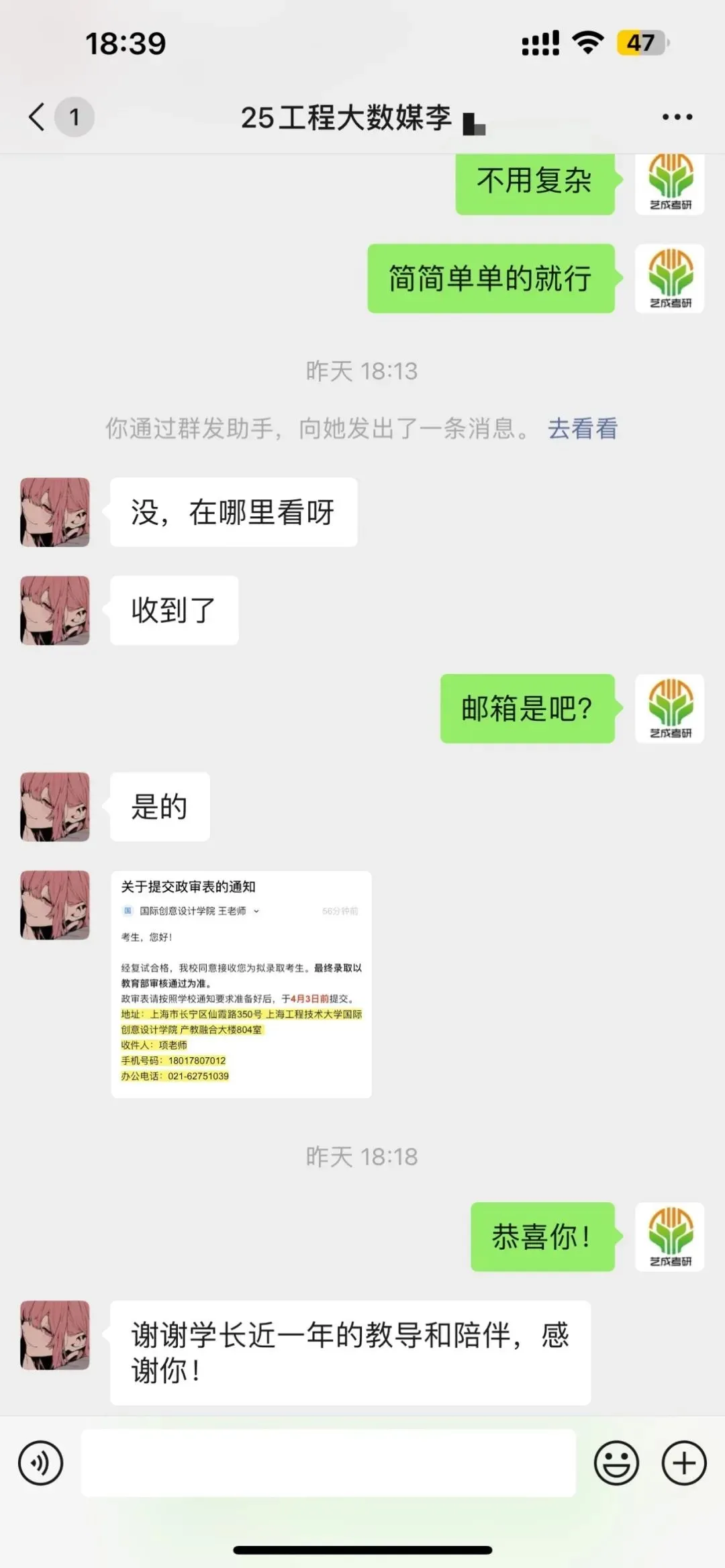 6、顺利上岸,发放预录取通知。(调剂)
