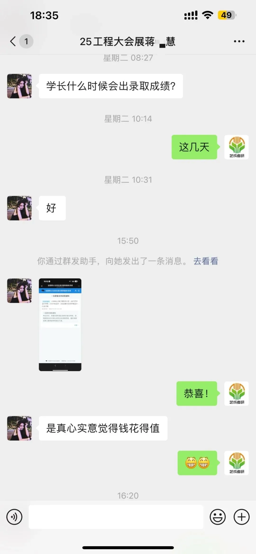 24届艺成复试调剂班共30名学员,全日制调剂上岸25人,非全调剂上岸3人!)