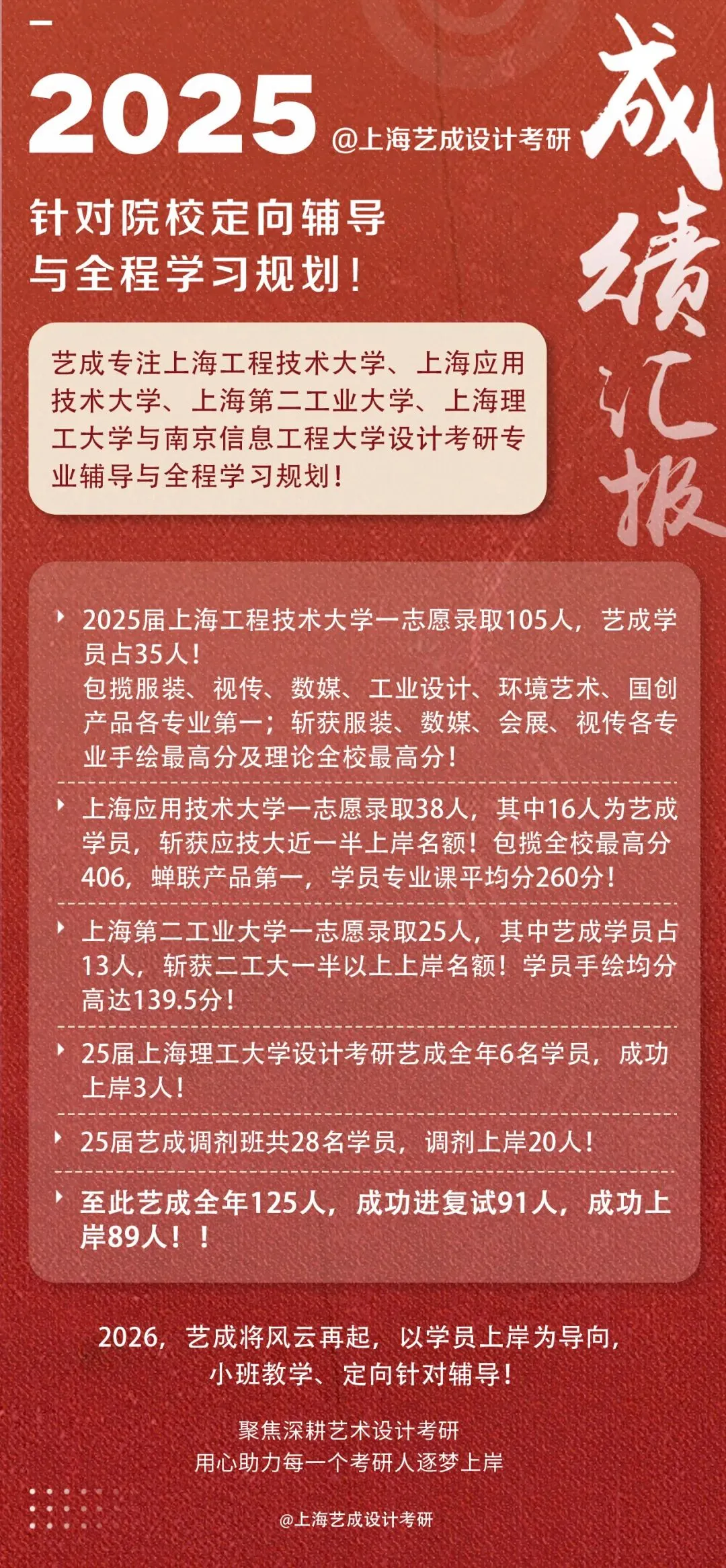 欢考上海工程技术大学、上海应用技术大学、上海第二工业大学的学弟学妹们微信咨询,艺成用实打实的上岸成绩招生~