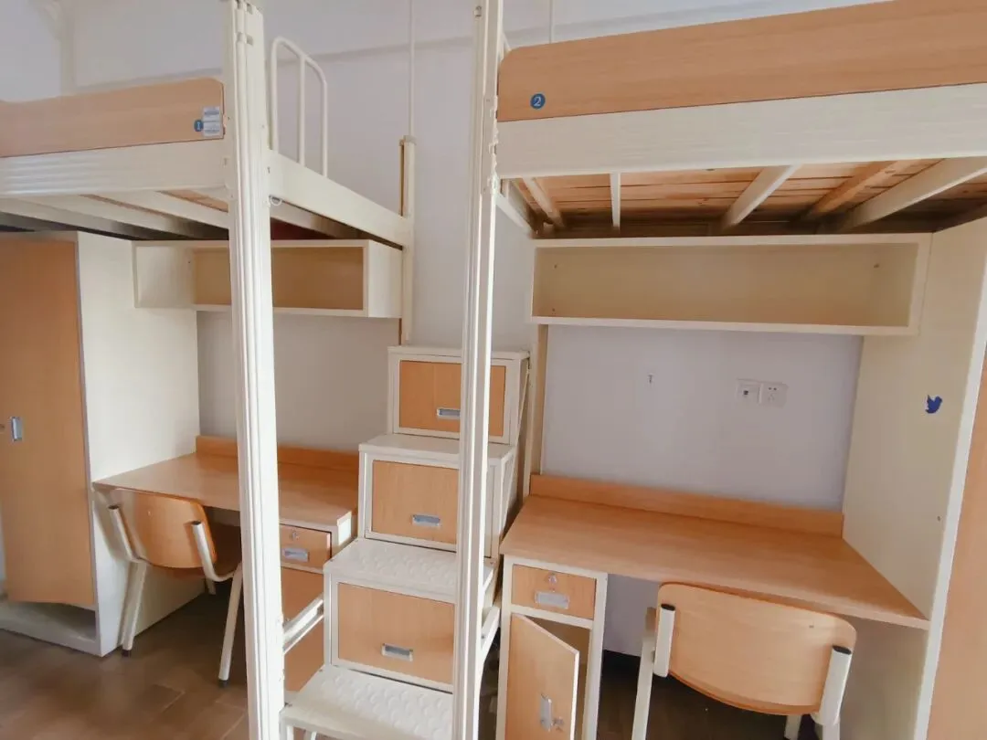 宿舍环境安静舒适,标准4人间,上床下桌,配套齐全。包括空调、热水器、洗衣机、饮水机、衣柜、校园无线网络等生活设施。拎包入住,学习无忧!
