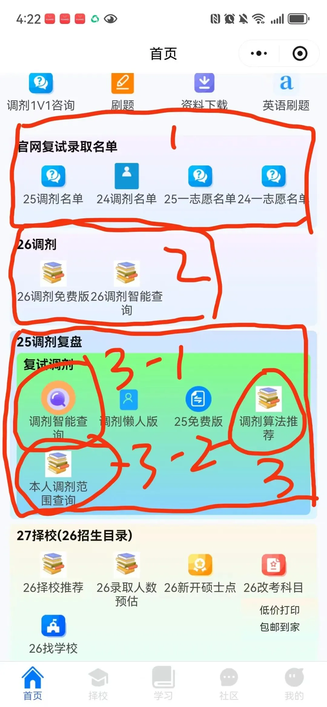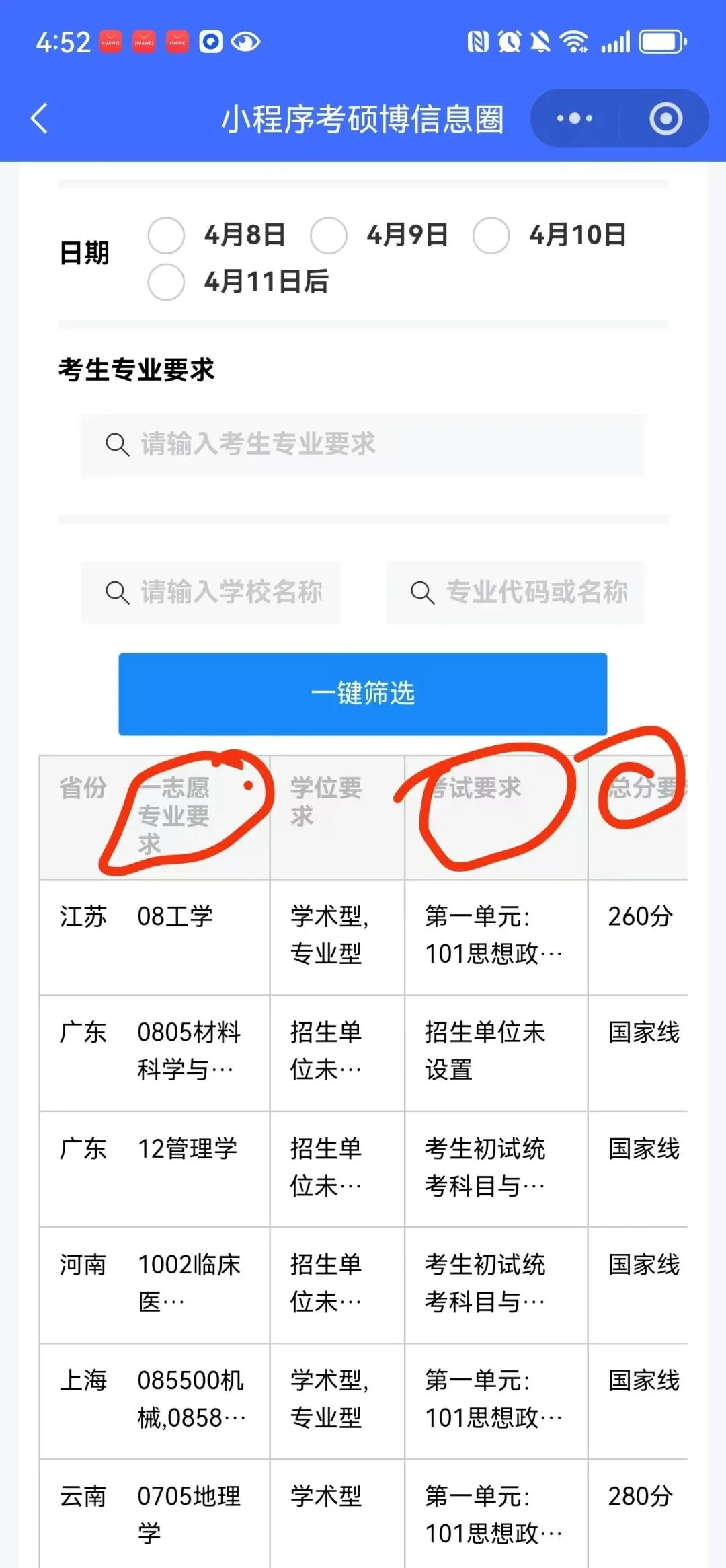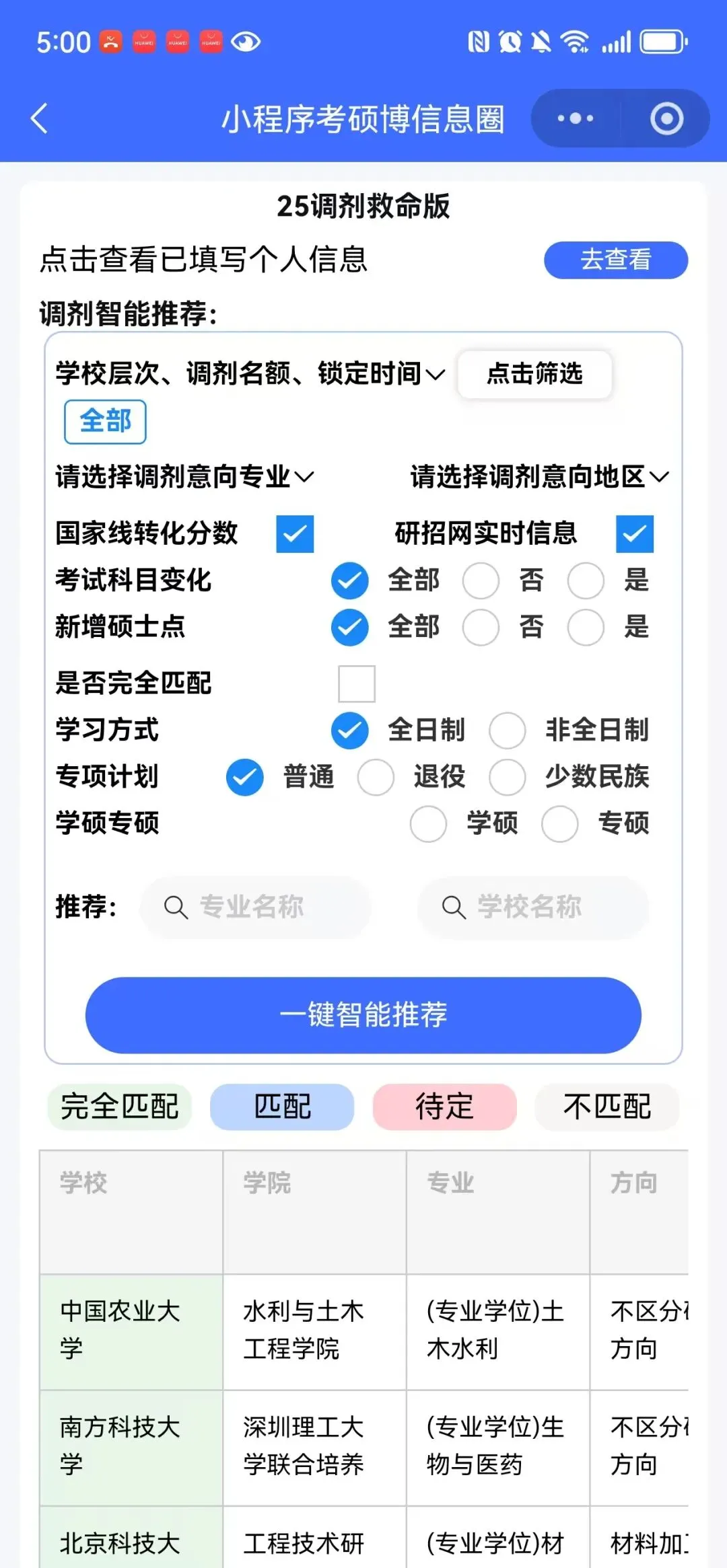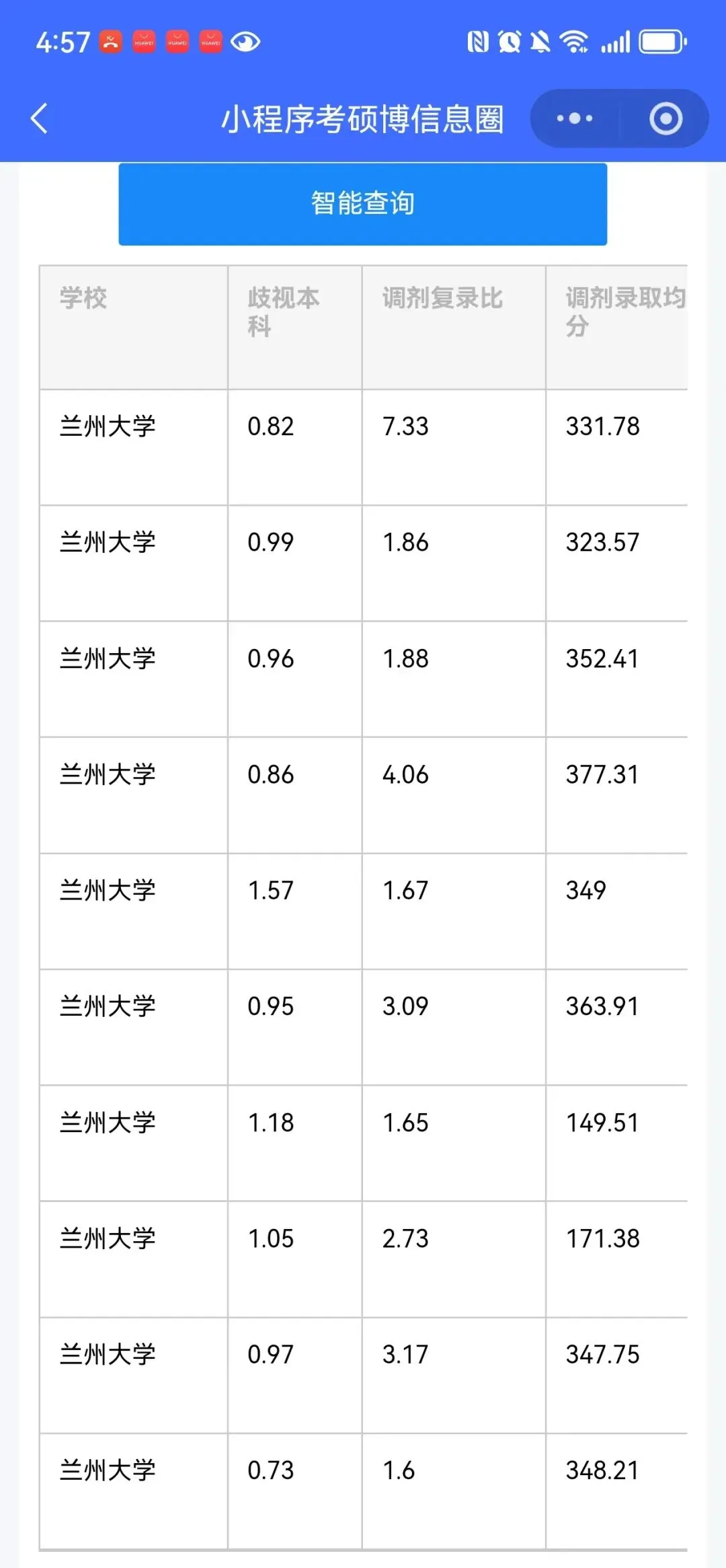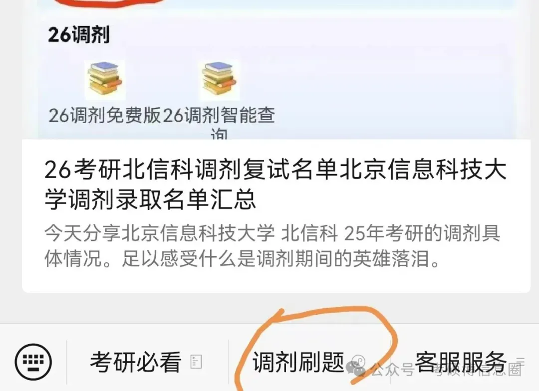 调剂其实是备胎。很多一志愿上线的同学,害怕复试被刷,但需要全力以赴准备一志愿复试,又没有精力自己找调剂信息,为了帮助大家,我们团队用心把所有调剂小程序工具汇总好了。大家照着去查调剂信息数据即可。省事省心。然后,返回的二维码识别即可。或点公众中间的发送消息按键,然后 公众号 菜单 下方正中间 调剂刷题:进去后,即可查询。接下来完整介绍调剂小程序汇总的工具箱。这个是所有一志愿复试录取和调剂复试录取的核心数据。全部是学校官网公布的原始文件。由于公示期结束后,很多文件网上找不到了。我们都是在公示期间手工下载下来的,分享给大家。数据是比较全的。含24 25 两年的一志愿复试录取名单和调剂复试录取名单。大家可以没事看看原始文件,你会发现,市面上绝大多数 择校和调剂小程序的数据很多假数据。26调剂板块现在只有两个产品,一个是免费版,一个是付费版。免费版的所有数据是25年研招网公布的调剂数据,这些数据弥足珍贵,你会发现很多规律:1)4月8日零点发布调剂信息的高校只占全部调剂学校的60%,很多人8日填完,放弃填调剂志愿了,就损失了40%上岸的机会。2)调剂的时候,对一志愿报考专业的要求很宽松,很多学校调剂的时候只要是08工科,都可以调剂。08工科调剂07理学 调剂农学都可以的。3)调剂志愿有锁定时间。每个人同时可以填三个志愿,如果一个学校的锁定时间是12小时,那么12小时锁定时间结束,你可以解锁填下一个志愿。所有数据都来自官网公布的调剂复试录取名单库。我们把一些参差不齐的复试名单和录取名单统一了格式,让大家可以在全国范围内筛选学校。主要整理的数据有:进调剂最低分 均分,调剂录取最低分 均分。调剂批次,调剂复录比,调剂复试专业名称和代码,学制 专硕 学硕灯。当然还有歧视本科指数。帮大家做更好的择校智能查询。这里就两个小模块,3-1调剂智能查询,跟26调剂付费版类似。就是根据25年的数据做的全国范围分A区 B区的智能查询。3-2 调剂智能推荐和本人调剂范围查询。这两个模块呢,是本人填写自己的专业和分数后,我们算法给大家做智能匹配的。调剂智能推荐:就是根据本人的专业和分数,我们根据25年研招网公布的调剂需求,自动给大家推荐可以调剂上岸的志愿,你可以把这个志愿填到研招网中,这个算法推荐的效果非常好,去年很多同学依靠这个算法找到了很多小众的学校上岸的,例如:东北某个大学,有077500计算机科学与技术的专业可以调剂,分数很低。有位 同学就捡漏上岸了。他如果没有我们小程序,他都不知道07理学有计算机科学与技术的专业,而且也不知道他0854可以调剂。调剂范围自动查询:根据本人的专业和分数,我们将25年研招网公布的调剂要求,给大家自动做了匹配,这样,你不需要看很多学校,然后,看你是否满足他们的调剂要求,我们把这个繁琐的步骤给大家做了。从模块进去后,直接搜你想看的学校,就能查到这个学校的原始官网复试录取名单文件。如果这个学校没找到,可以在群里联系我们,我们帮你补齐。或者确实官方没有公布。这里对调剂免费版做了许多细致的介绍。大家可以看看。你进去后,就可以搜你的目标学校和目标专业。里面有这个学校该专业调剂的完整要求:包括锁定时间,接受一志愿专业列表,对一志愿考试科目的要求,本科专业要求等等。这些要求很多需要仔细看,写在小字里面。很累。所以我们在第三个模块里面给大家做了智能调剂范围匹配。你可以根据调剂录取均分 低分 这些筛选指标,筛选 各类可以填写志愿的方向。同时,还可以查校内调剂还是校外调剂,这学校有没有多批次调剂等等。里面的数据非常翔实,都是准确的。其实本科指数的计算逻辑在这里:还有调剂录取的总分 科一 科二 三 四的均分 低分等等。1)国家线转化分数。是因为每年的国家线不一样,我们把你今年的分数转化成类似去年国家线高多少分。例如今年国家线271,你考了280,就是国家线高9分。而去年国家线264,那么你相当于去年考了273。这样更加准确的推荐调剂志愿。2)研招网实时信息。是因为很多调剂志愿,公布12小时就下线不能填了。我们只匹配当下研招网还可以填报的调剂志愿。3)考试科目变化。就是他今年考的科目跟去年不一样。例如计算机,他今年第一年改考408.这种学校也许可以调剂捡漏。4)新增硕士点。就是他今年第一年招硕士。这样的学校很多一志愿报考人数很少。调剂可以捡漏。未尽事宜,解说不清楚的地方,欢迎大家进群问。后面会直播给大家解说,教大家使用。