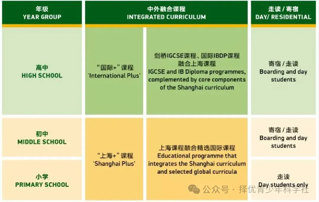 学校有初高中两个学段。初中又分普通班、双语班与融合班,高中为国际高中课程。