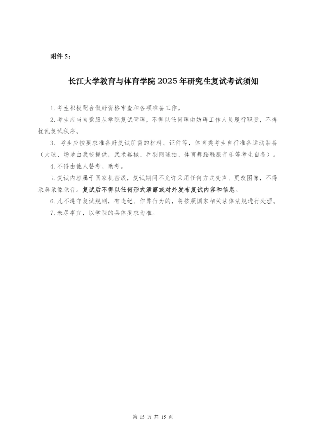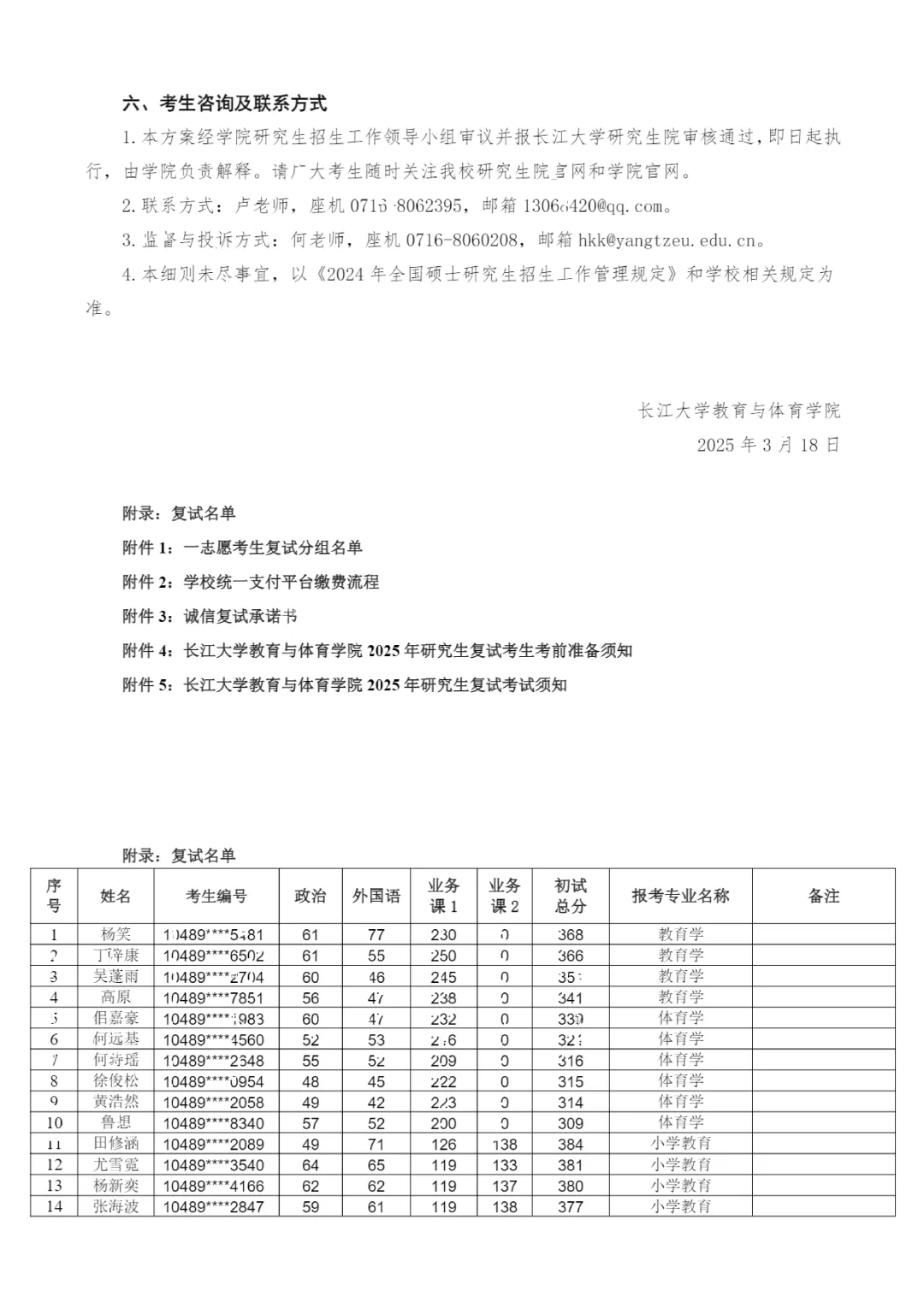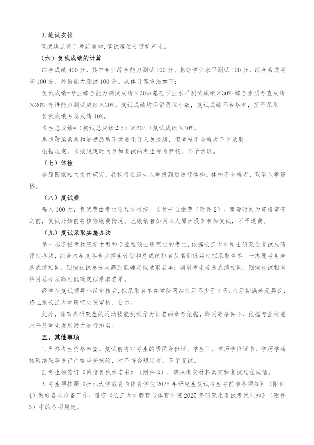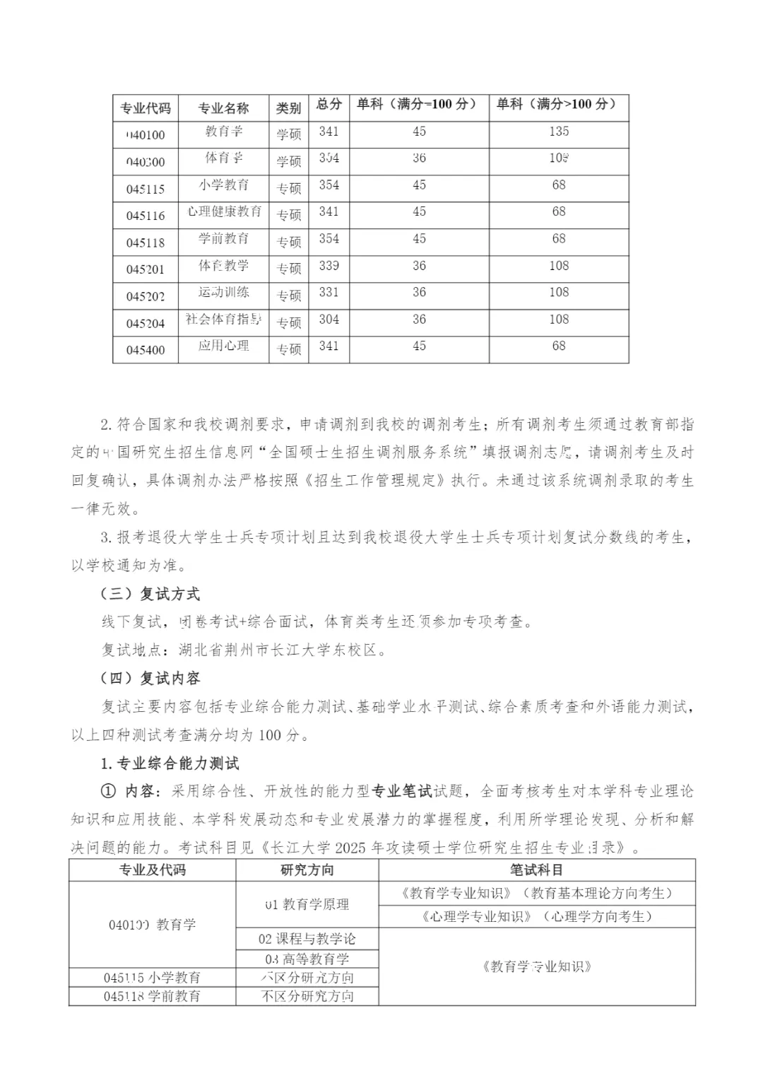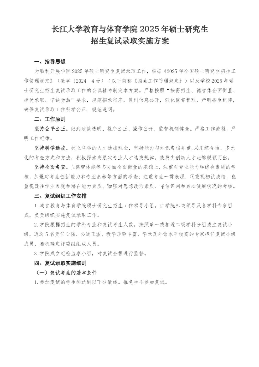 考研复试丨长江大学教育与体育学院2025年硕士研究生招生复试录取实施方案