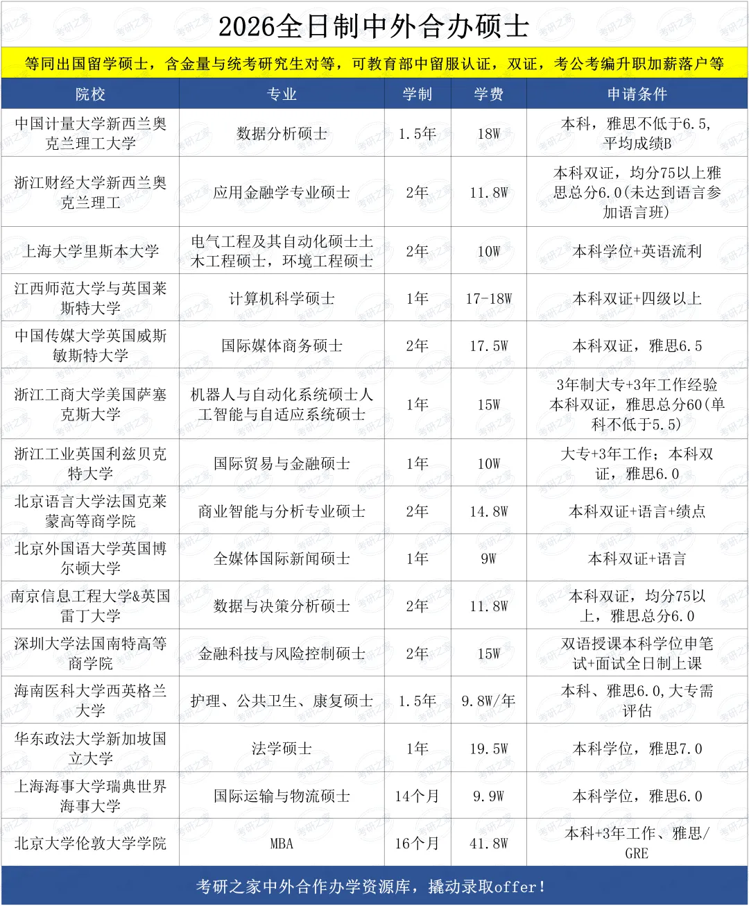 2026年全日制的中外合办硕士项目已经整理。如果想尽快了解项目,可私信小助手对接专业顾问老师详细了解。