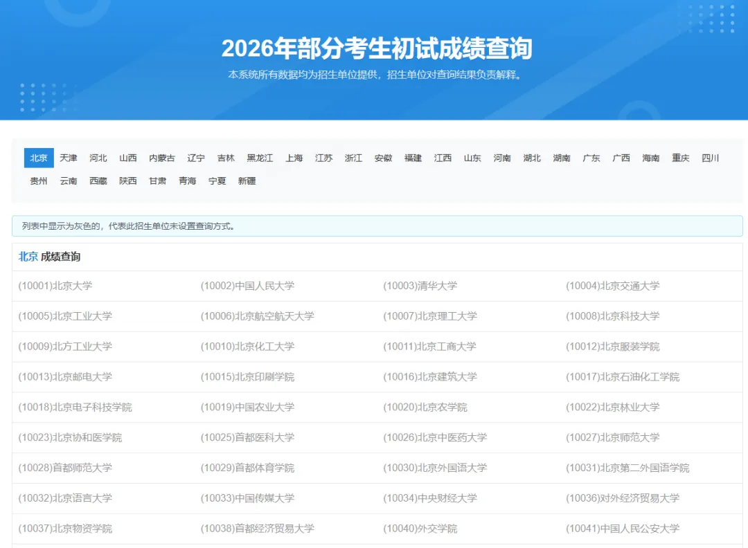 研招网也就悄悄给大家送来了“查分预警”——2026考研初试查分界面已更新👇
