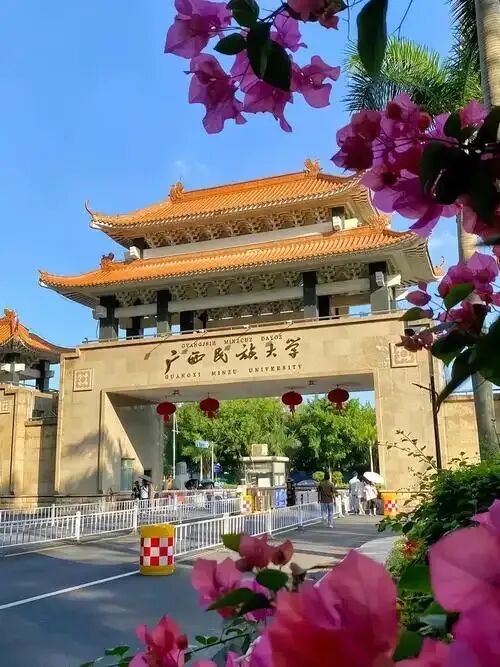 广西民族大学地处广西首府南宁,是国家民族事务委员会和广西壮族自治区人民政府共建高校。学校创建于1952年3月,前身是中央民族学院(今中央民族大学)广西分院,1953 年2月更名为广西省民族学院,1958 年6月更名为广西民族学院,2006年2月更名为广西民族大学。学校占地面积3600亩,现有相思湖、思源湖和武鸣三个校区,校园环境优美静谧,建筑风格古朴典雅,人文氛围深厚浓郁,是读书治学的理想园地。现有教学科研仪器设备总值达6.3亿元,图书馆纸质文献总量300万余册(含期刊合订本),电子图书580万余册,电子期刊360万余册。现有教职工2600余人,其中具有高级职称教师680余人,具有博士学位教师770余人。拥有国家“万人计划”哲学社会科学领军人才、茅盾文学奖获得者、鲁迅文学奖获得者、享受国务院特殊津贴专家、全国优秀教师、全国模范教师、中宣部文化名家暨“四个一批”人才、教育部“新世纪优秀人才支持计划”人才、广西八桂学者等国家级、省部级人才百余人次。现建制22个本科教学学院,全日制在校生4.3万余人。在历届中国国际大学生创新大赛国赛中斩获3金11银32铜,学校连续七年获评广西赛区“优秀组织奖”。