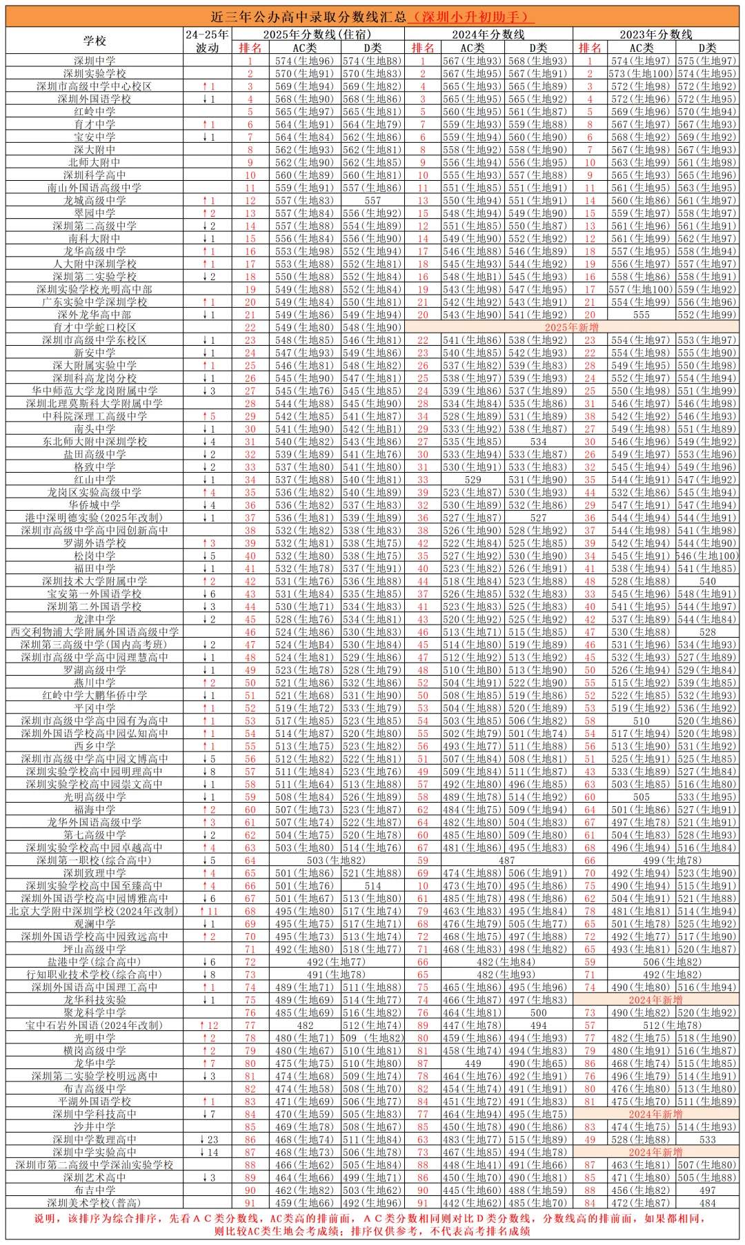 >深圳公办高中近三年的录取分数线排名一览!