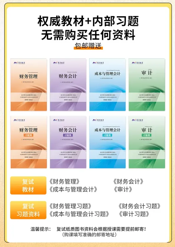 课程包邮赠送教材+内部习题:我们汇集整理了全国各大院校的历年考题和内部题库,将高频考题进行提炼汇编成册,通过系统教学+高频题库强化,帮助大家理清脉络、强化记忆、扫清疑惑,实现一本通,考点明!