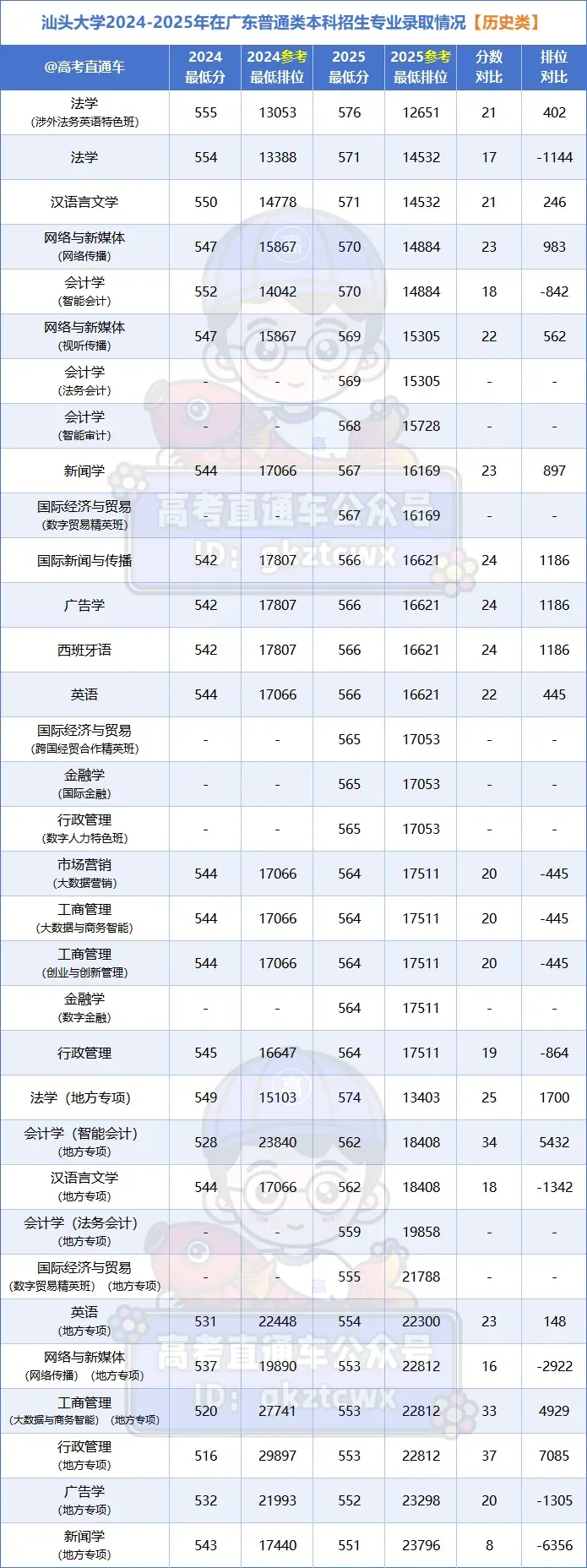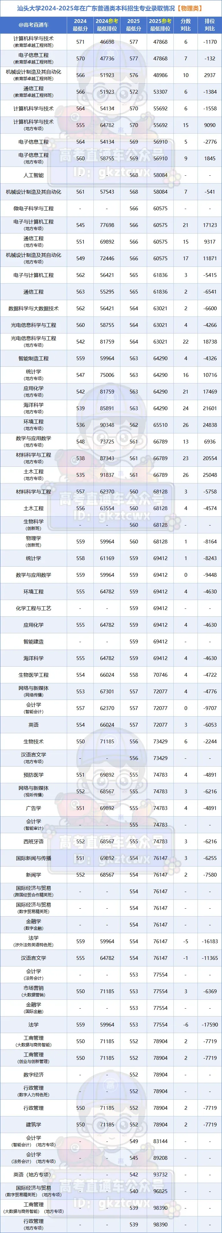 注:由于汕头大学暂未公布2025年的专业录取排位,下表所列排位均根据广东2025年高考一分一段表匹配估算,仅供大家参考。如有差异,请以学校官方最终发布的数据为准。