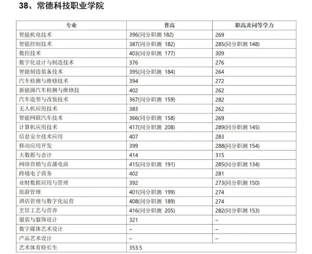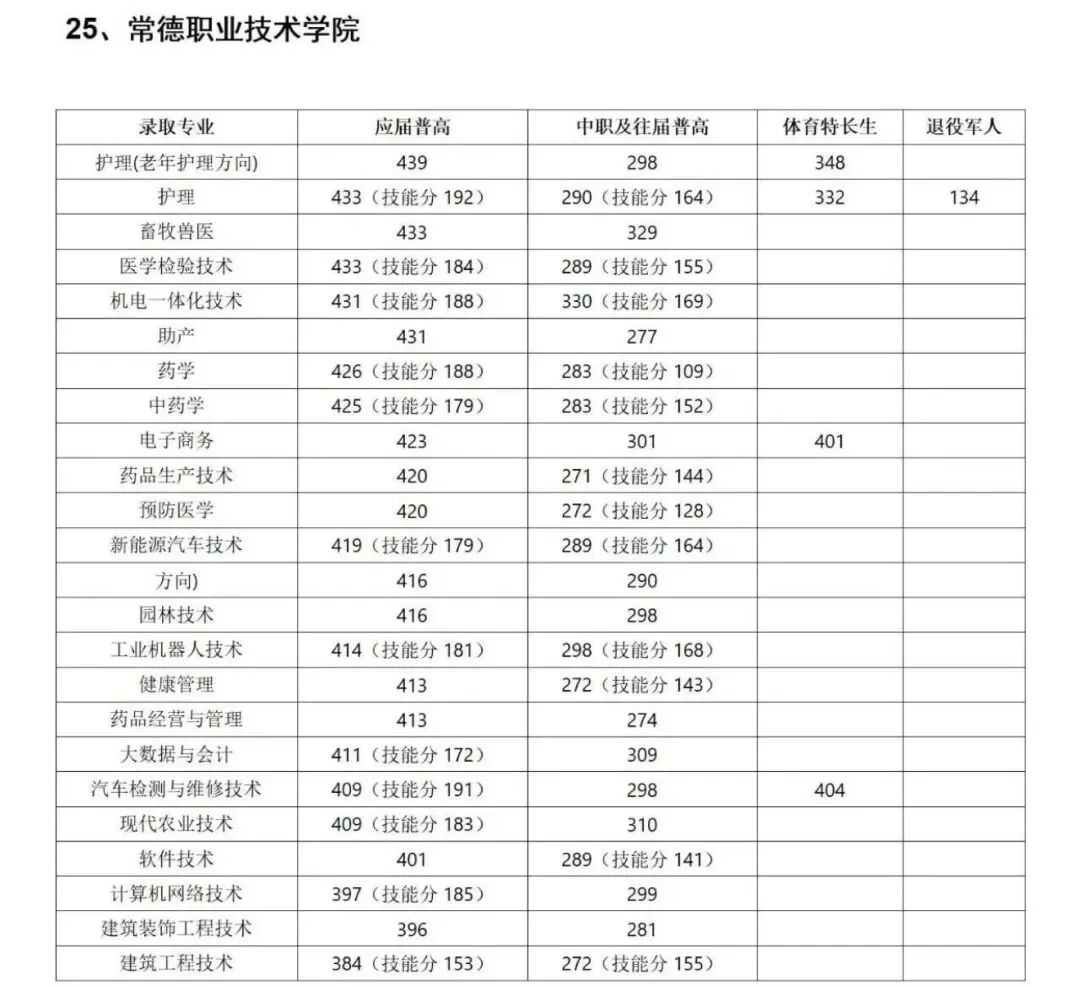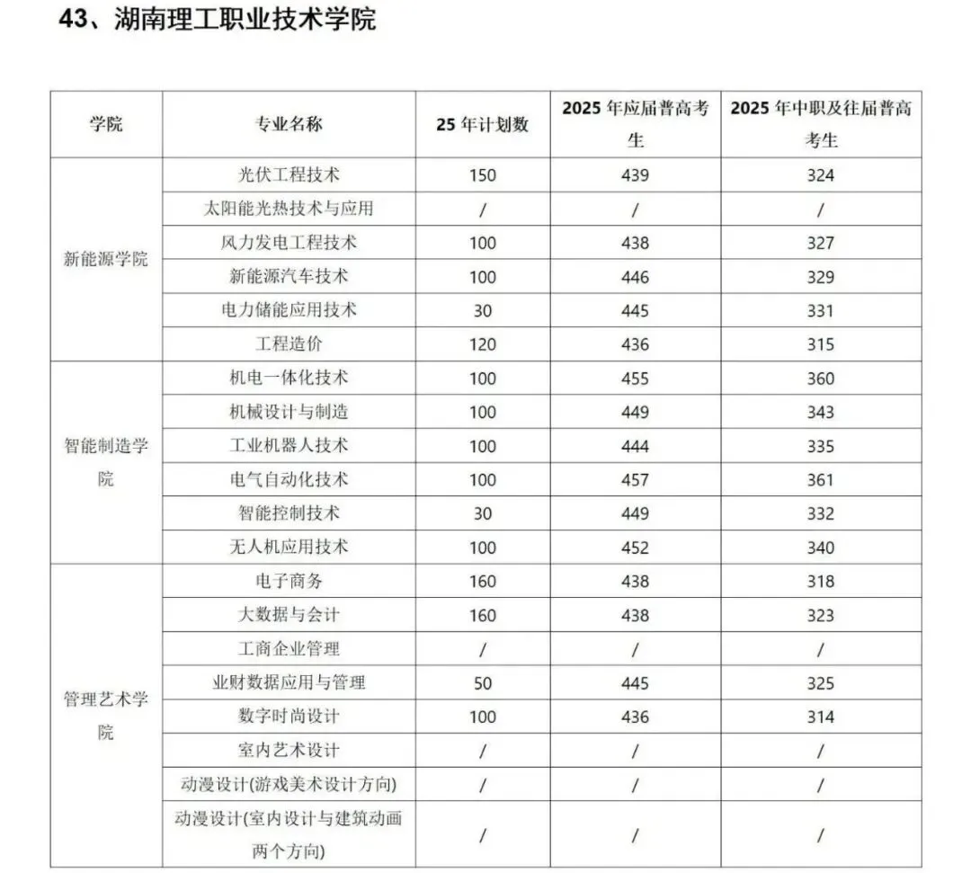 ◆ 2026湖南单招各院校录取分数线(参考)