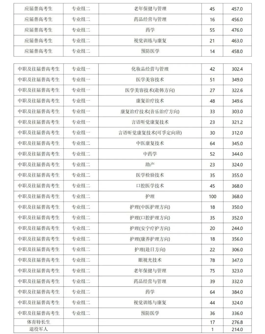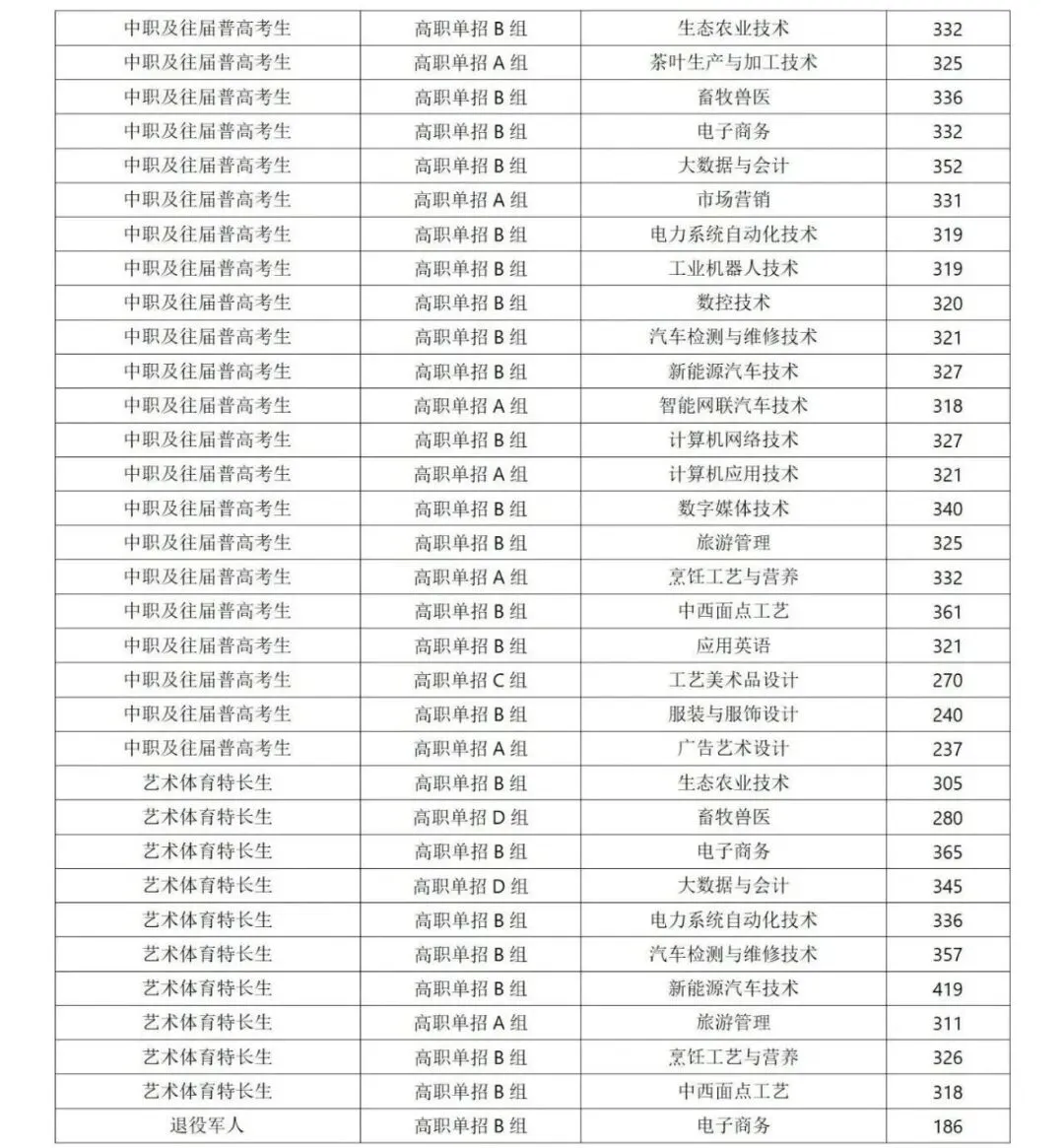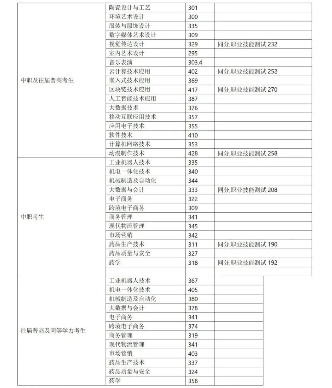 ◆ 2026湖南单招各院校录取分数线(参考)