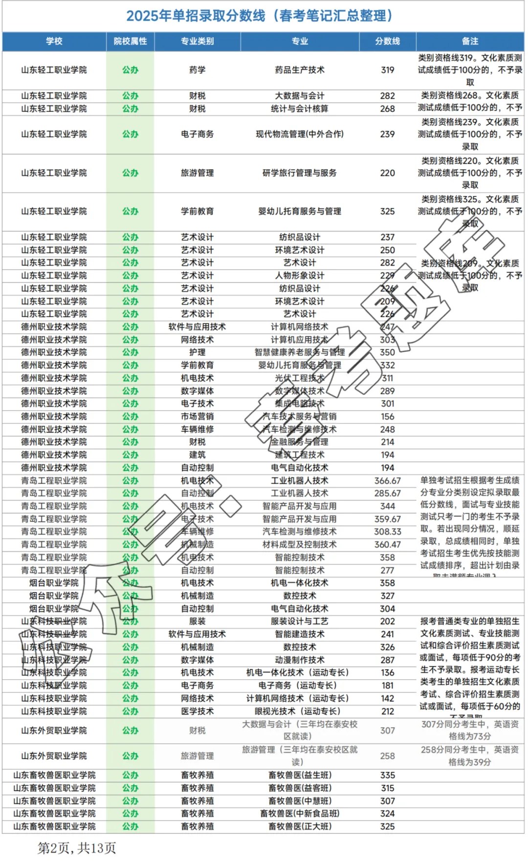 >山东单招各学校 考试内容+录取要求+分数线(2025年)
