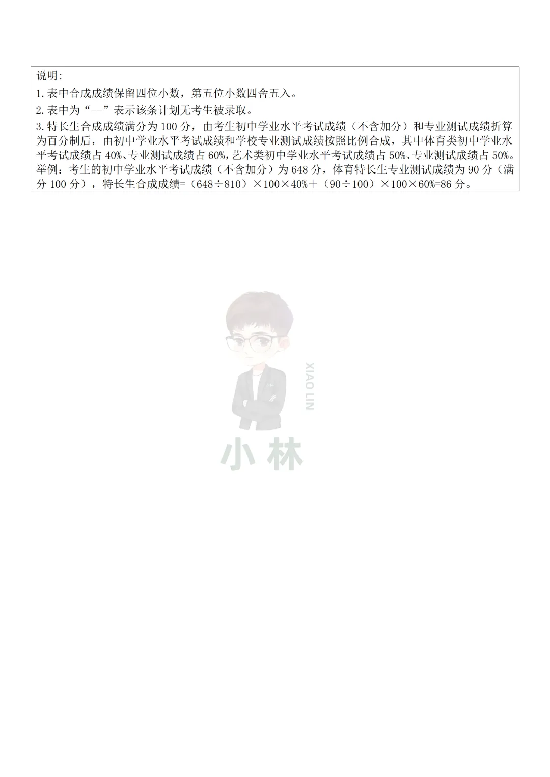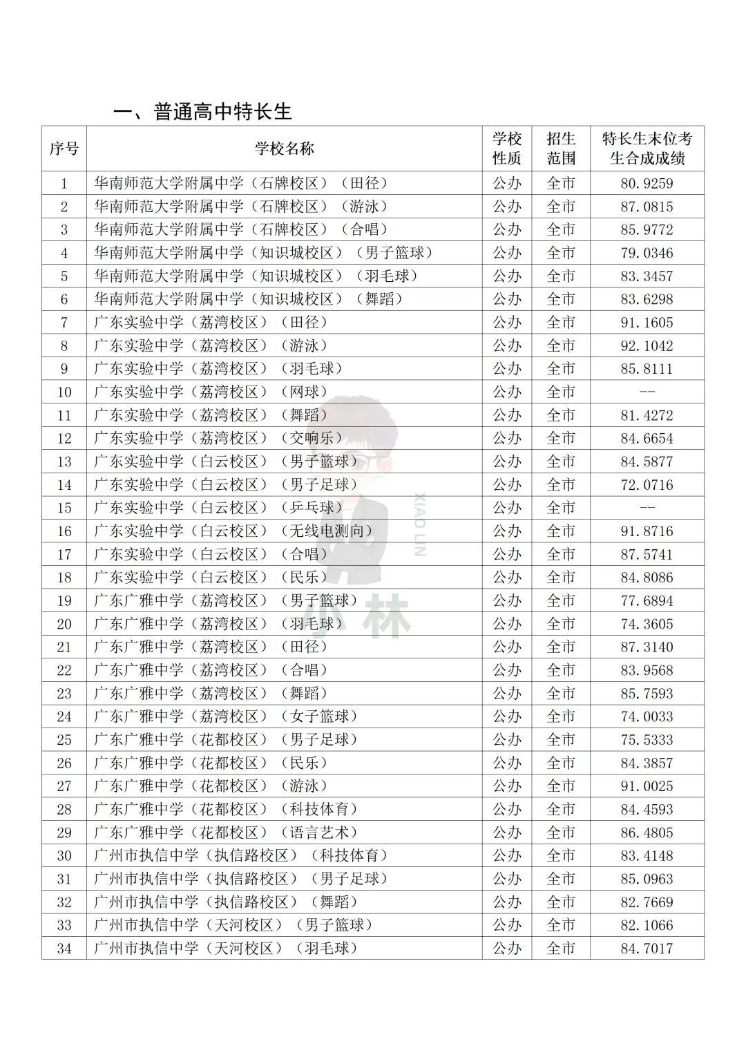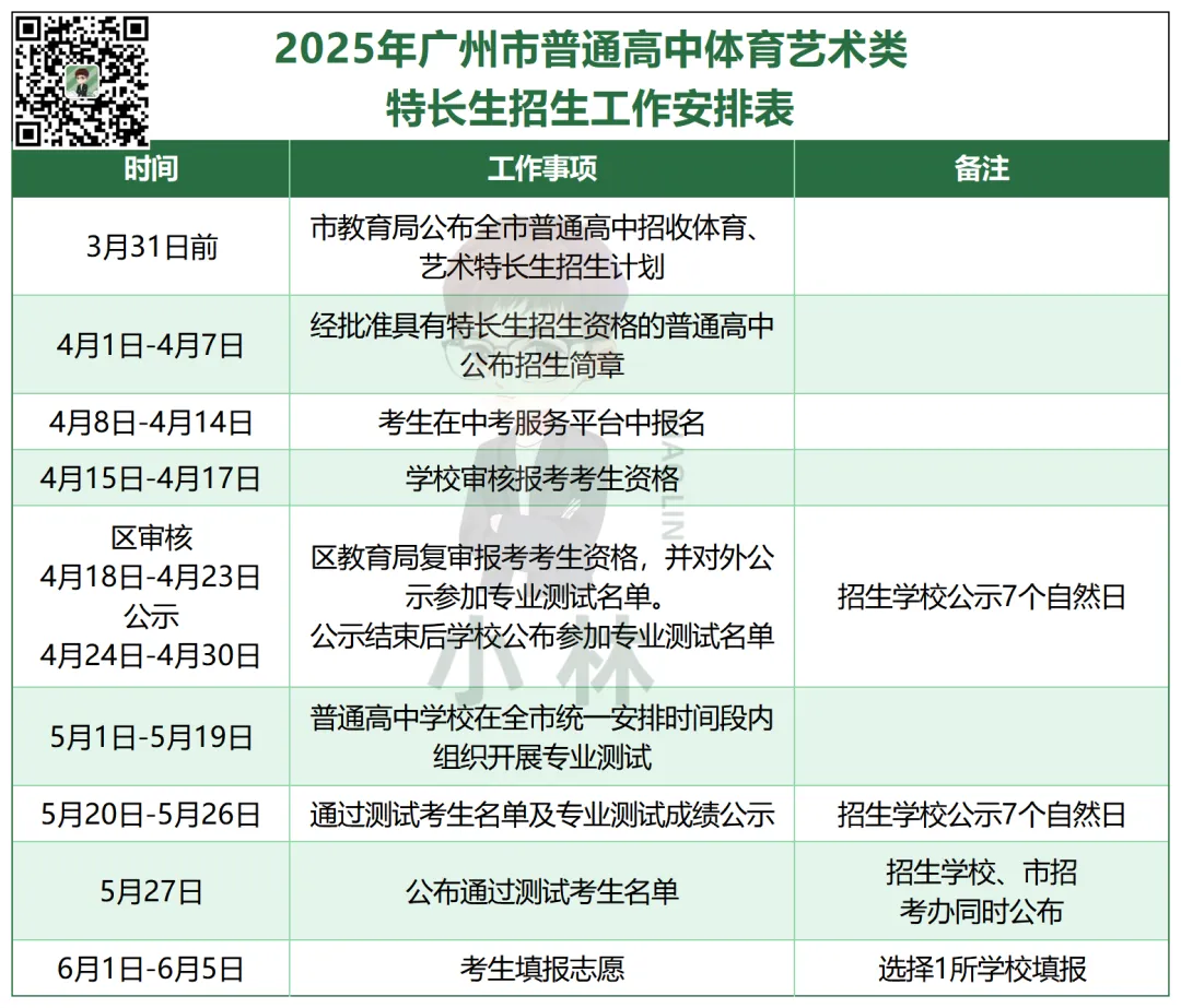 每年四月初,学校会放出特长生招生简章,非常建议提前对眼神,如果你担心错过信息,可以进小林中考群,小林会第一时间提醒大家!