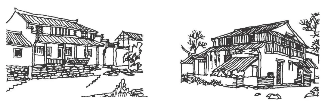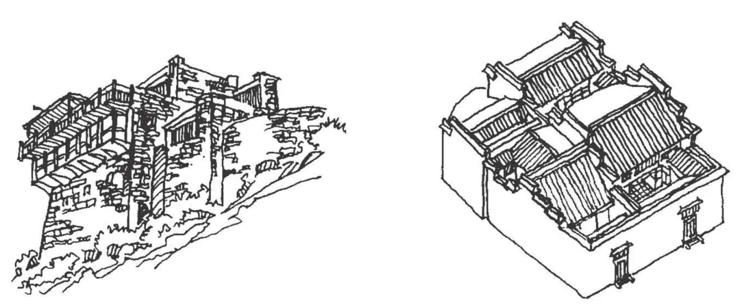 4、浙江东阳-右:砖木混合,基本合院形制,毛石筑隔墙。