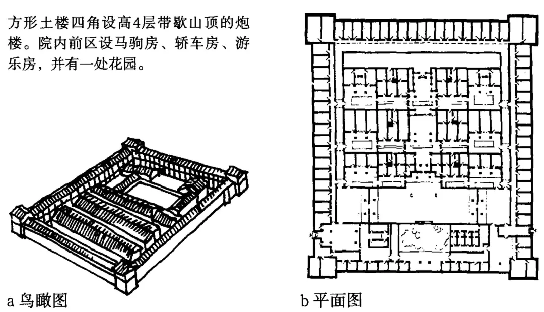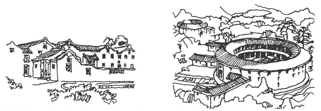 8、福建永定-右:传统土楼,外部封闭,内部开敞。