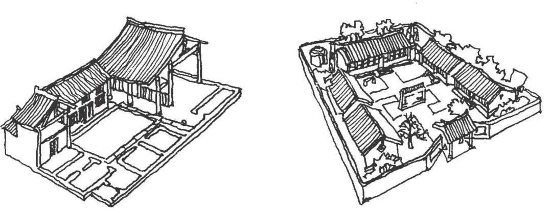 院落是中国传统地域性建筑单体的核心特征,这一特征留存于我国各地的民居之中。这些院落形态在不同的地域性建筑中具有不同的表达方式,可以分为三合院、四合院两种基本类型,再由此产生院落空间的组织变化。