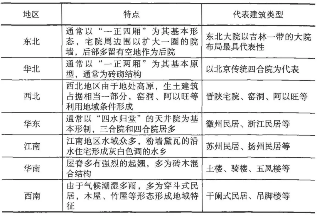 不同地域建筑单体形态特征: