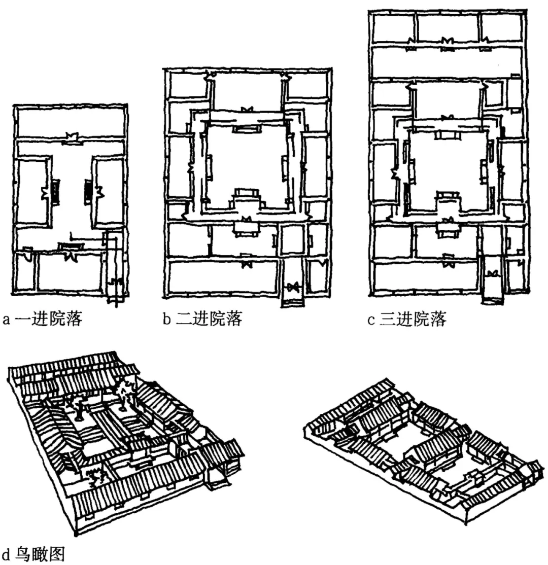 此类形制的单进院、两进院都以天井为中心,内向且封闭,中心序列对称布局,并围绕天井展开空间组织。