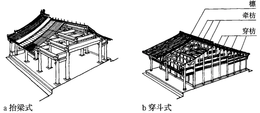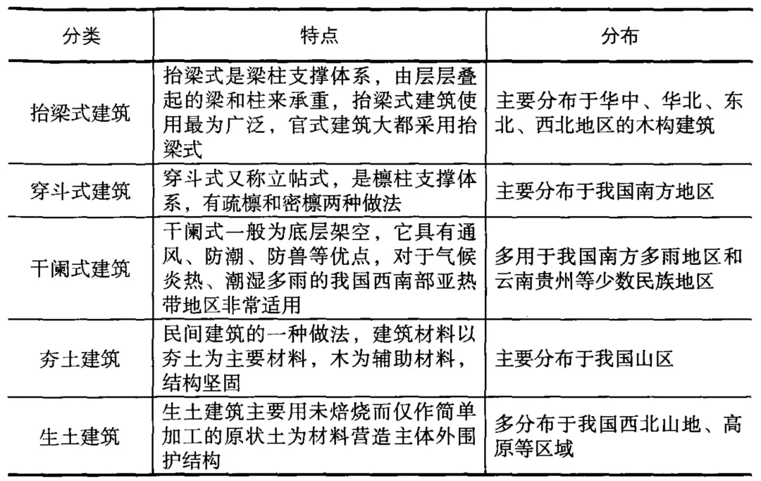 中国传统地域性建筑的结构体系主要分为抬梁式和穿斗式两种基本形式。同时,依据结构和材料的不同,又可以分为木建筑、砖木混合建筑、夯土建筑和生土建筑等。