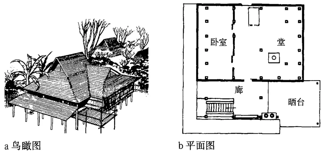 6、云南西双版纳-右:干阑式住宅,适应潮湿地区。