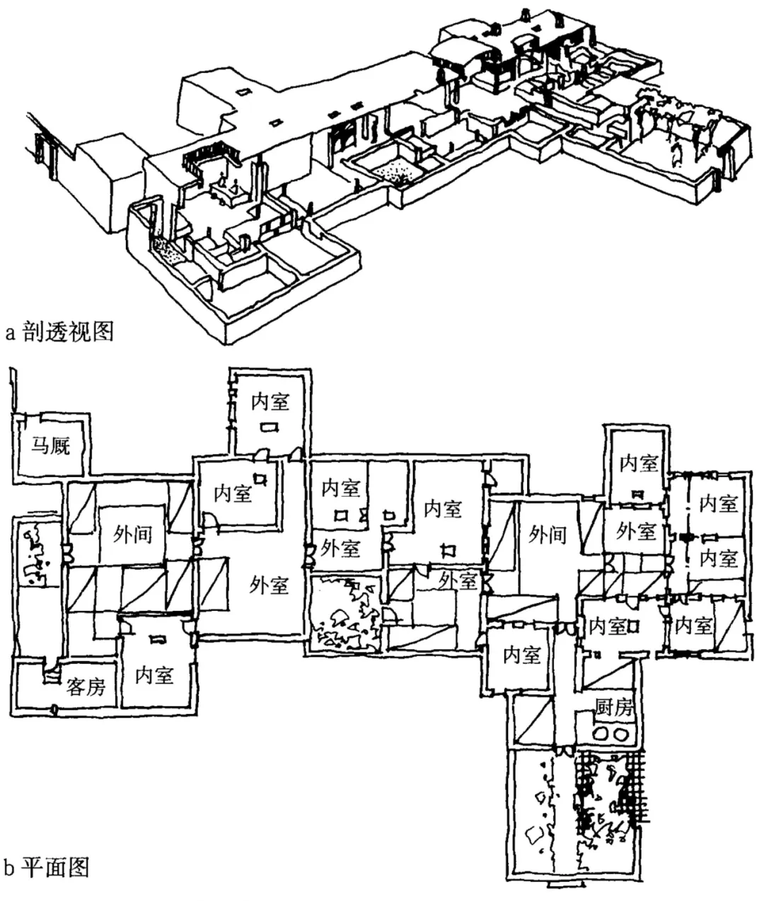 15、山西-左:晋陕宅院,抬梁式结构,一正两厢。