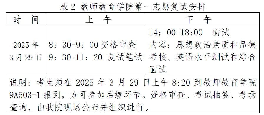 第一志愿复试时间定于2025年3月29日上午8:20开始,具体日程安排见表2。调剂复试将在第一志愿复试后安排,具体通知见本院网站(https://www.hbmzu.edu.cn/jyxy/)公布的调剂公告。