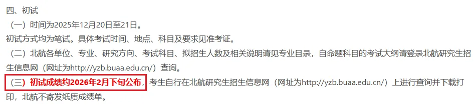 🔺 北京航空航天大学:初试成绩约2026年2月下旬公布
