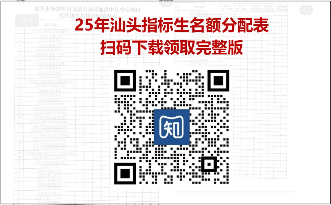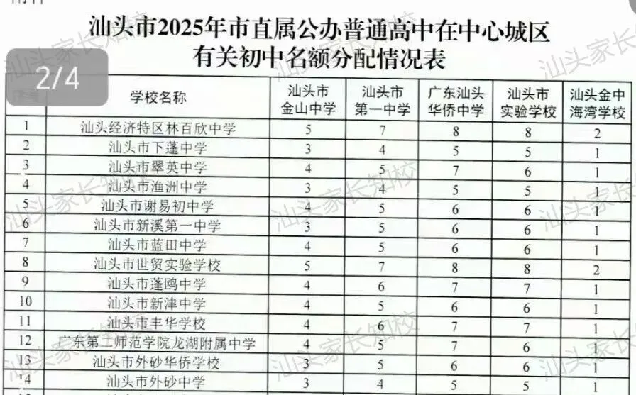 老师已经整理好汕头各区的初中获得名额资格数(潮南区暂无)