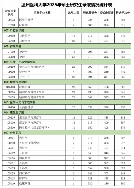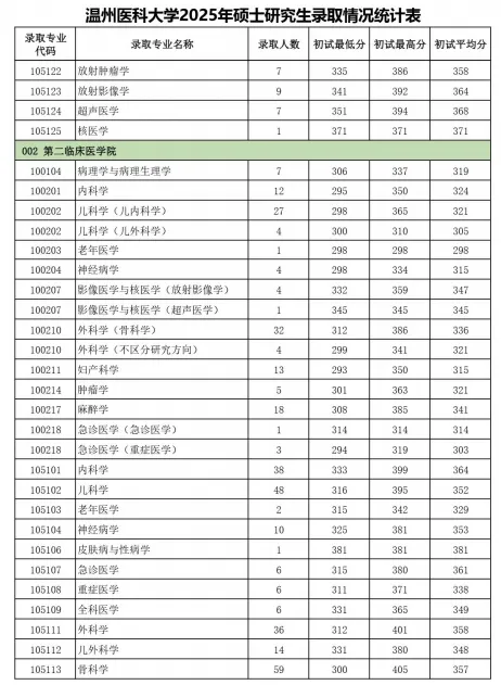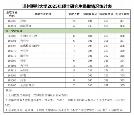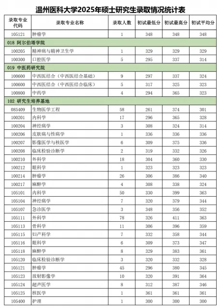 本期给大家分享的是温州医科大学2025年硕士研究生录取情况(含录取人数,初试最高分、最低分、平均分),报考温州医科大学的小伙伴可以看下~