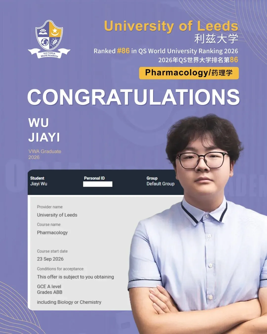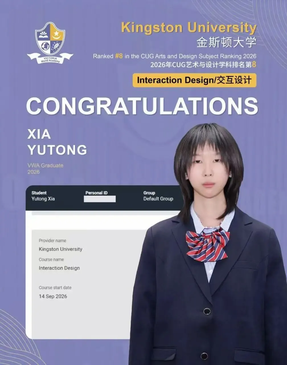英本申请持续升温的趋势下,维多利亚世界学院学子们借助新加坡考生身份,结合扎实的学术实力、精准的申请策略以及量身定制的升学规划,实现了理想院校与专业的双重突破。