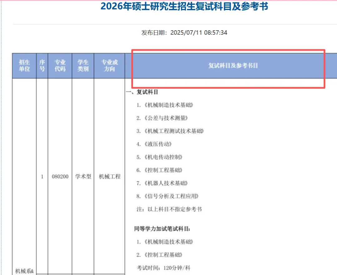 中国矿业大学(北京)机械与电气工程学院发布26考研复试参考书目。