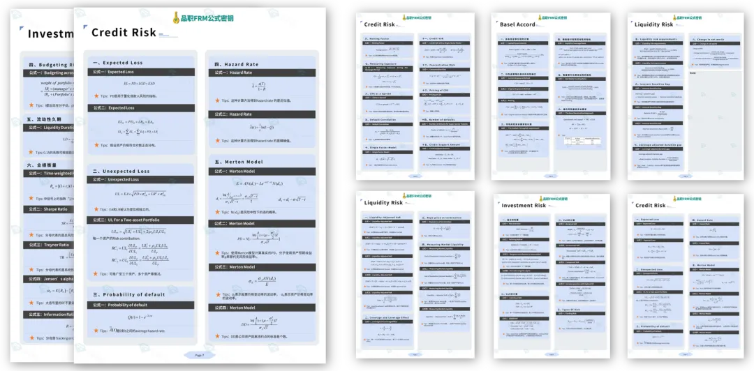 FRM公式密钥:由品职教研团队精心整理书中高频的核心的公式并加以汇总形成,能够帮助大家更好的掌握公式从而轻松突破定量题。