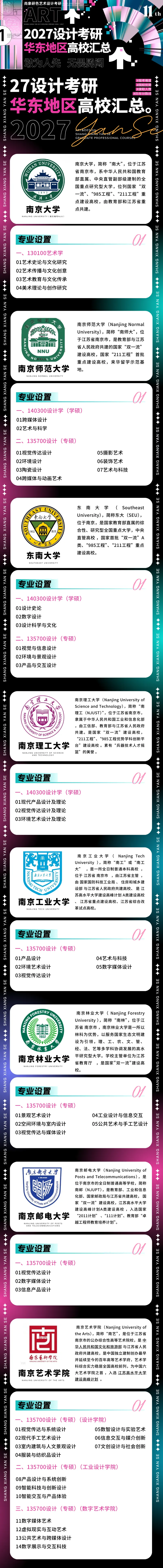 今天,我们聚焦华东地区(上海、江苏、浙江、安徽、山东、江西)——华东地区作为教育资源密集、设计产业领跑全国的核心区域,院校选择繁多,为2027考研的你详细梳理核心院校清单,帮你找准适配目标,让努力更有方向!
