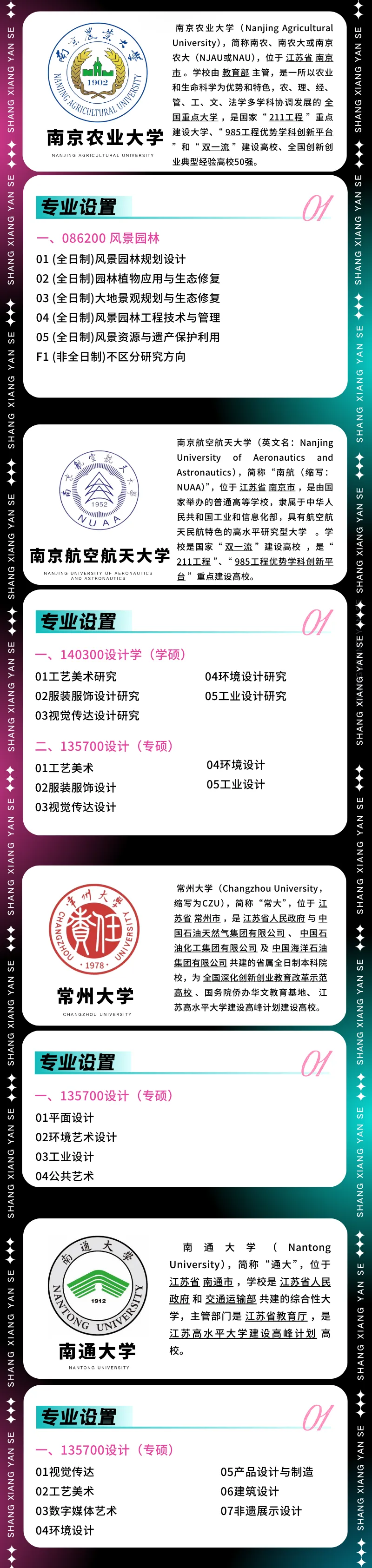 为帮大家打破信息壁垒,尚象研色基于11年艺术设计考研辅导经验,精心整理了全国上百所设计考研目标院校核心信息库!