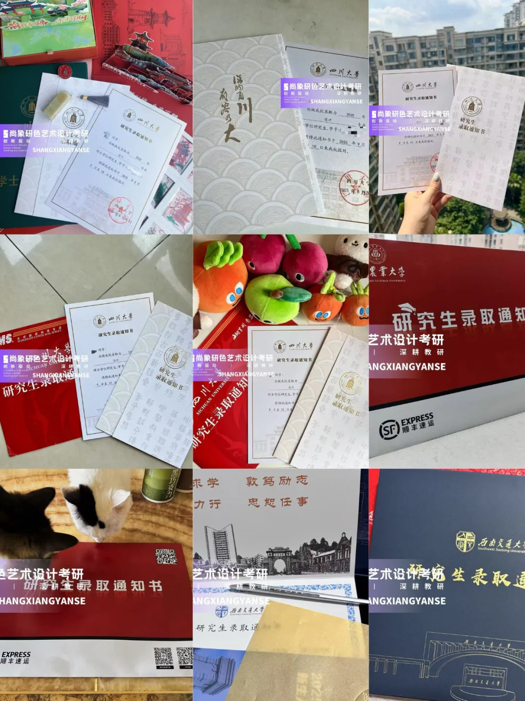 在过去的 2024 - 2025 设计考研中,尚象研色再创辉煌,又一批学员成功上岸,实现了自己的研究生梦想。