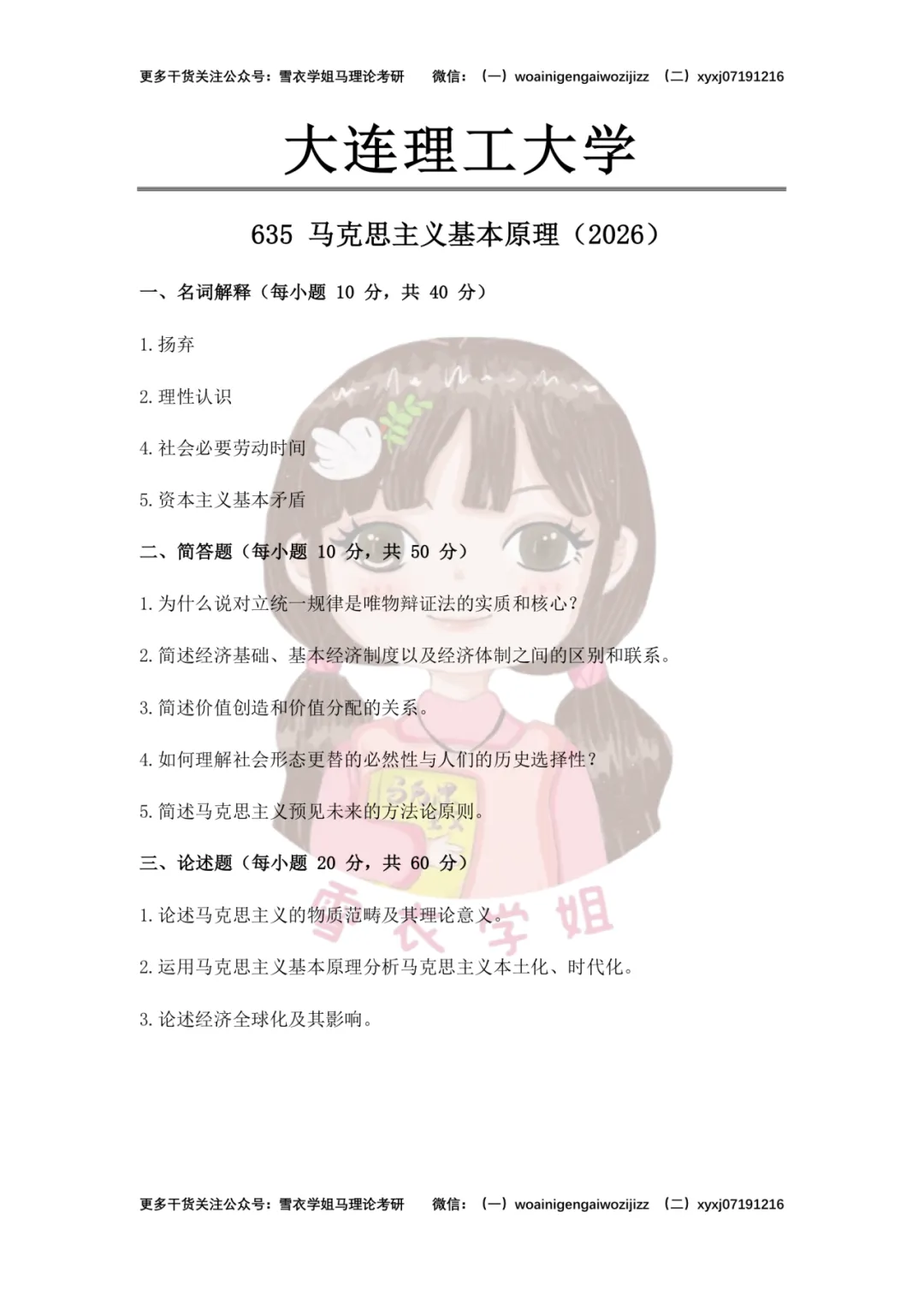大连理工大学重点考察马克思主义哲学、政治经济学核心原理的系统掌握和辩证理解,侧重理论本身的内在逻辑。