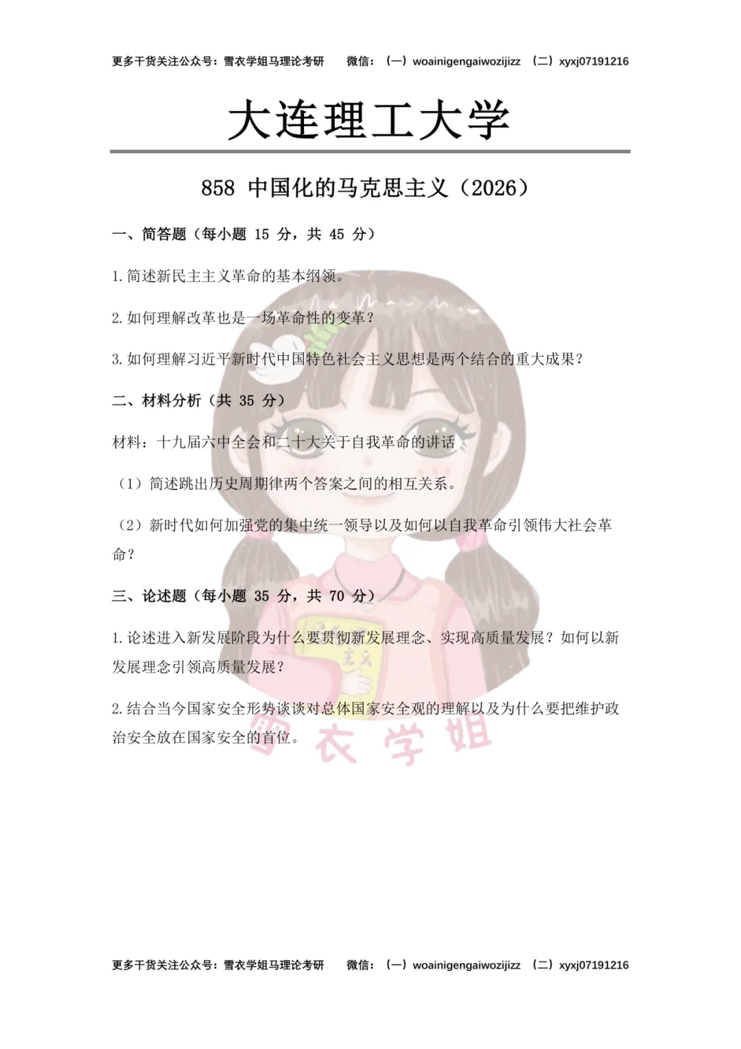 从今年的真题来看,大连理工大学注重考察对马克思主义中国化理论发展脉络的把握,以及运用党的创新理论分析重大现实战略问题的能力。考生在备考时需要重点注意以下三个方面: