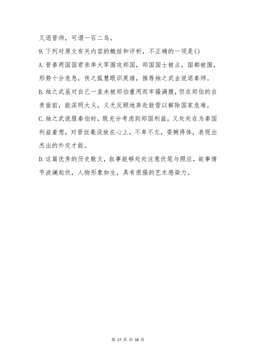 【语文】河北省中等职业学校对口升学考试—《烛之武退秦师》〔先秦〕左丘明(全面解析)
