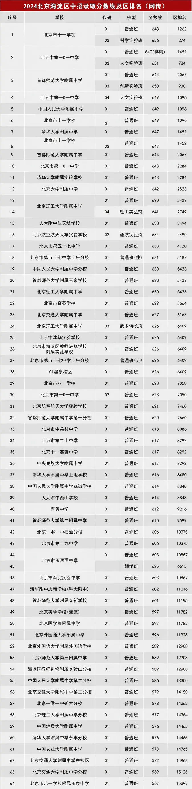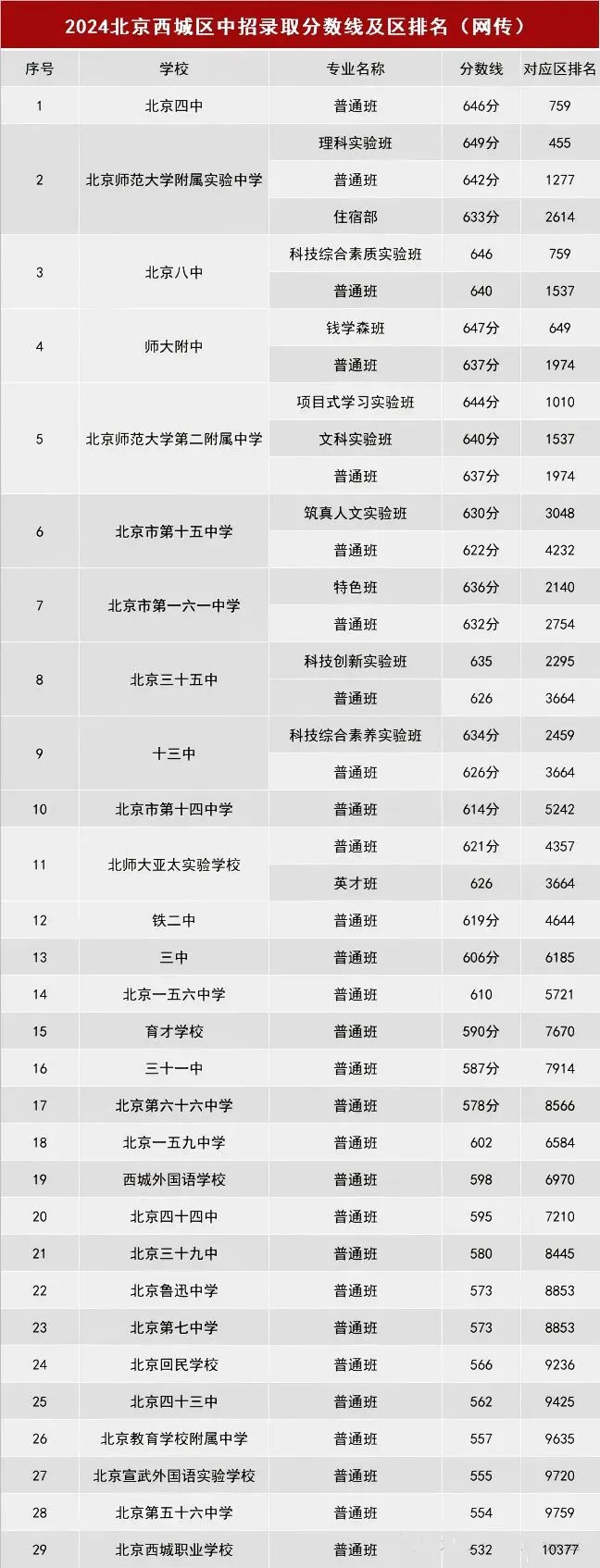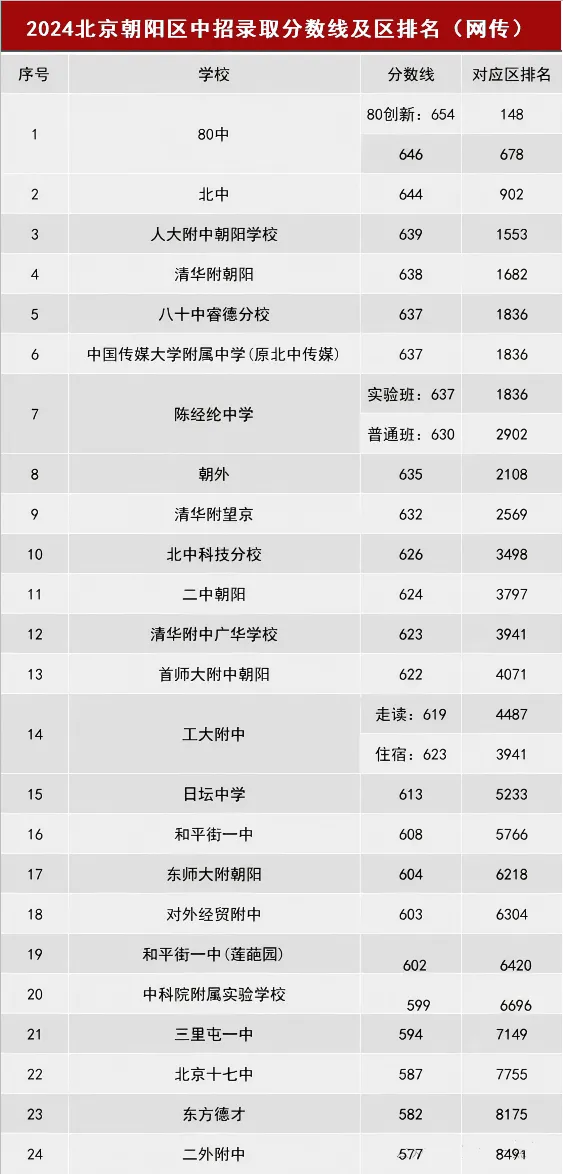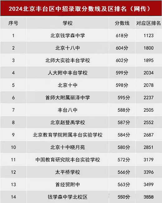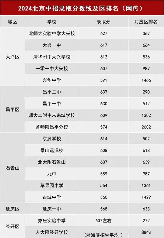 北京各区多少分可以上高中?本期分享2024年北京各区的优质高中录取分数线&区排信息(网传版),建议收藏!
